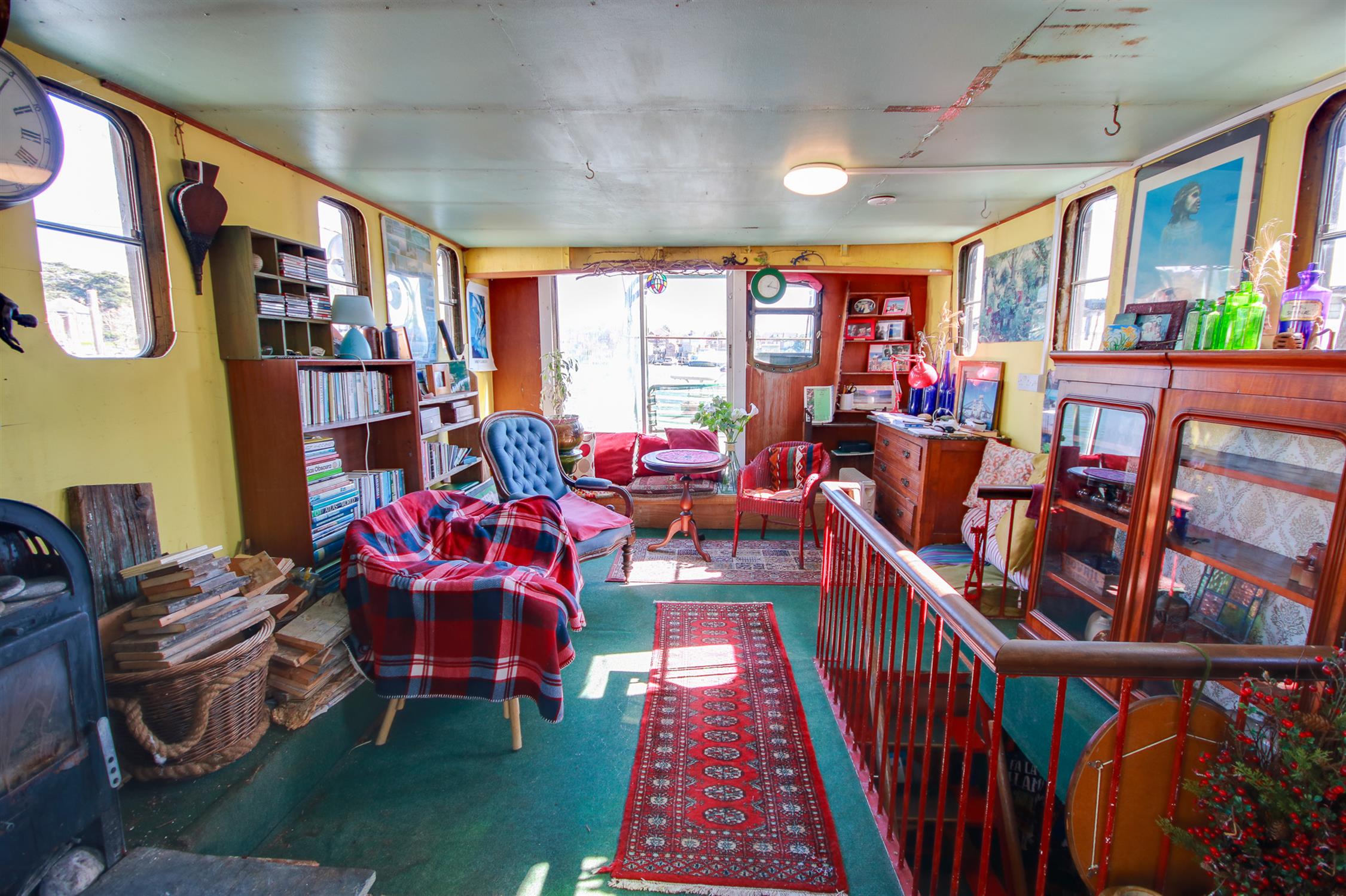 Welcome to Angele Emiel! A rare opportunity to acquire this impressive and historic houseboat, positioned on the River Itchen, with views across to Bitterne Park. The houseboat itself would relish some modernisation, but has the potential to be restored to its original beauty. The positioning of this mooring is fantastic, with the benefit of a private rear garden too. The accommodation briefly comprises of an open plan studio area on the top deck, with windows providing panoramic views. The stairs case leads down to a functional kitchen/diner. There are four cabins, all with storage and porthole windows. There is a four-piece family bathroom. The top deck provides gorgeous seating areas, where you can really appreciate the river. Viewing is highly recommended.