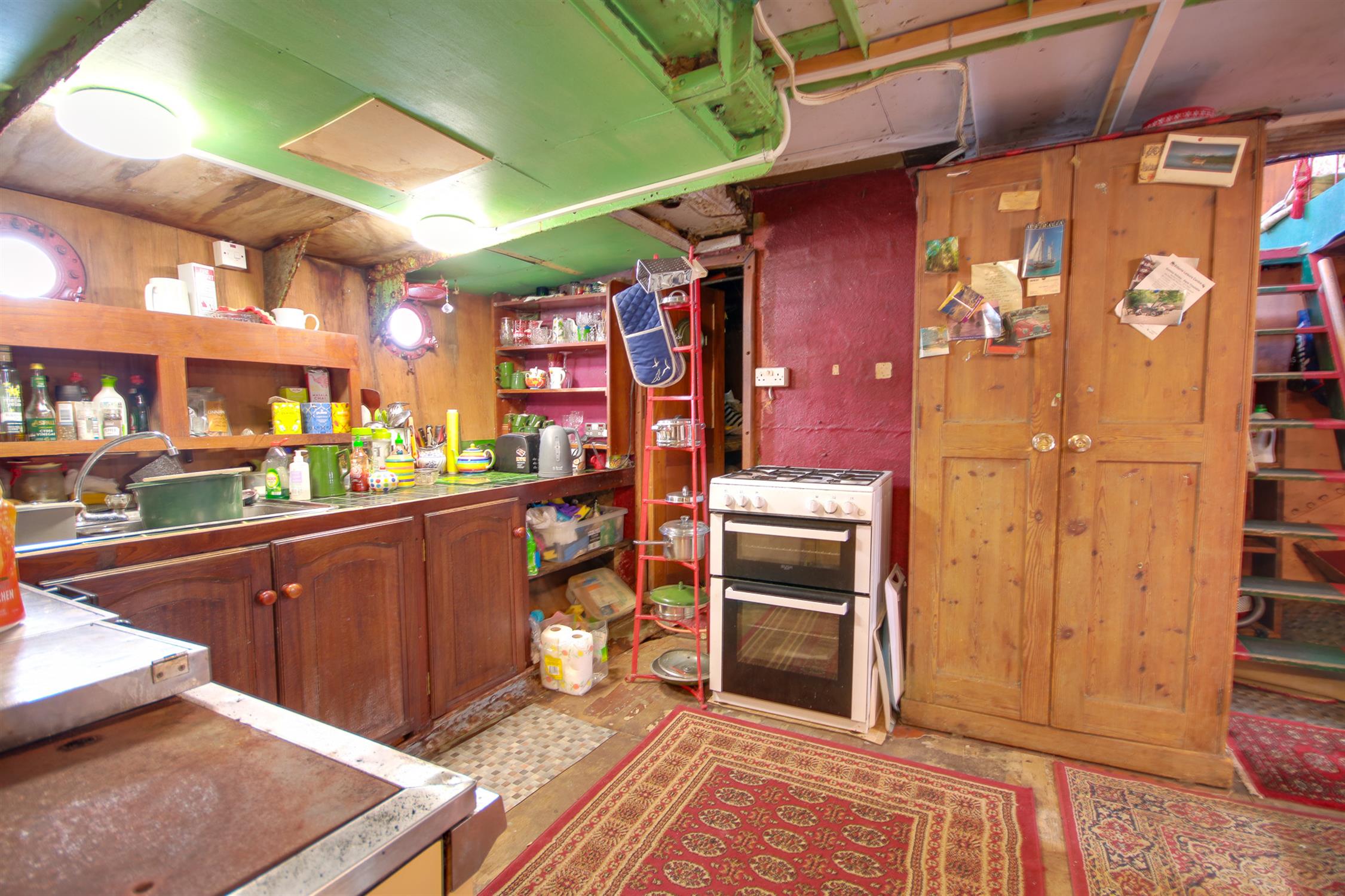 Porthole dual aspect windows, base units with work surface over, space for cooker, washing machine and fridge/freezer, large storage cupboard.