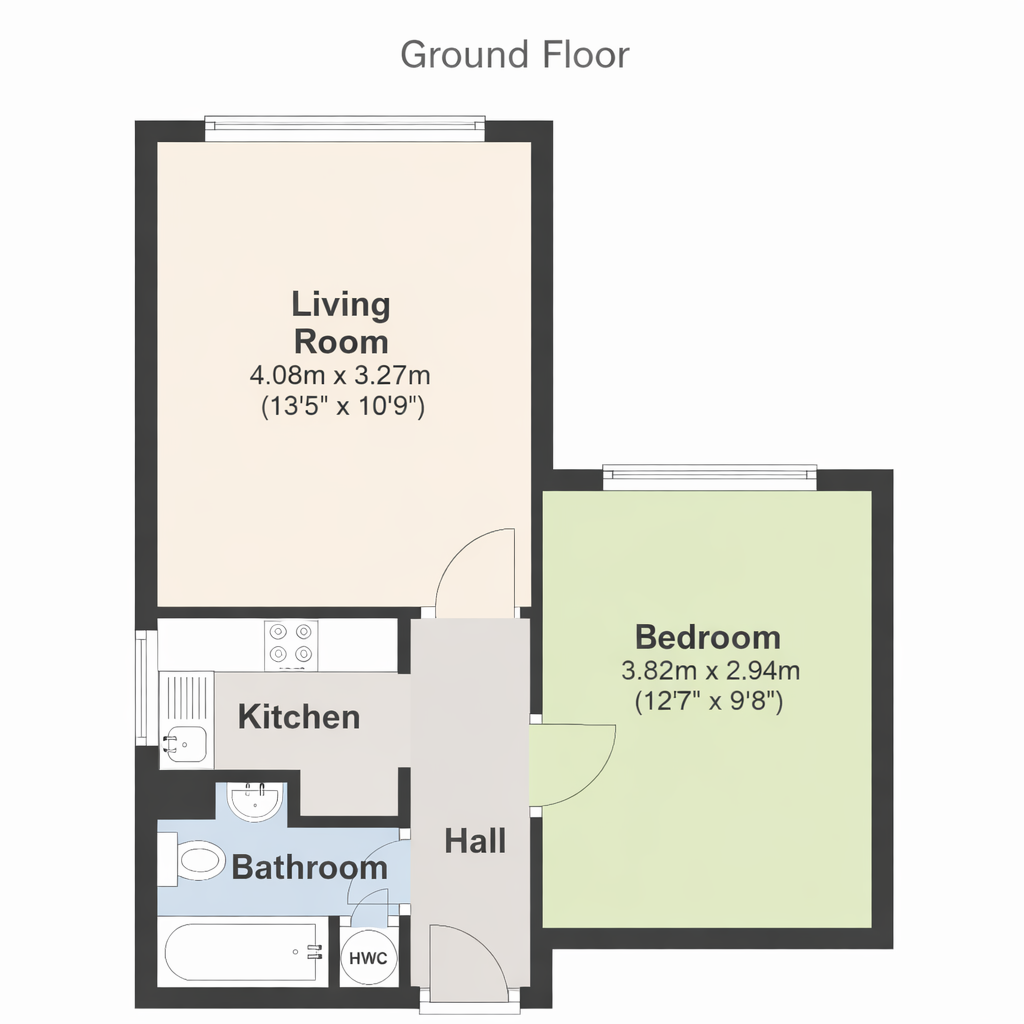 Internally, the accommodation comprises a bright and spacious living room with ample space for both a sofa and dining table, enhanced by a large window that allow natural light to flood the room.