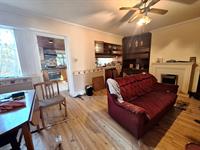 Electric fireplace with surround, base level built-in cupboards, Wood effect laminate flooring, double-glazed bay window to front aspect, radiator.