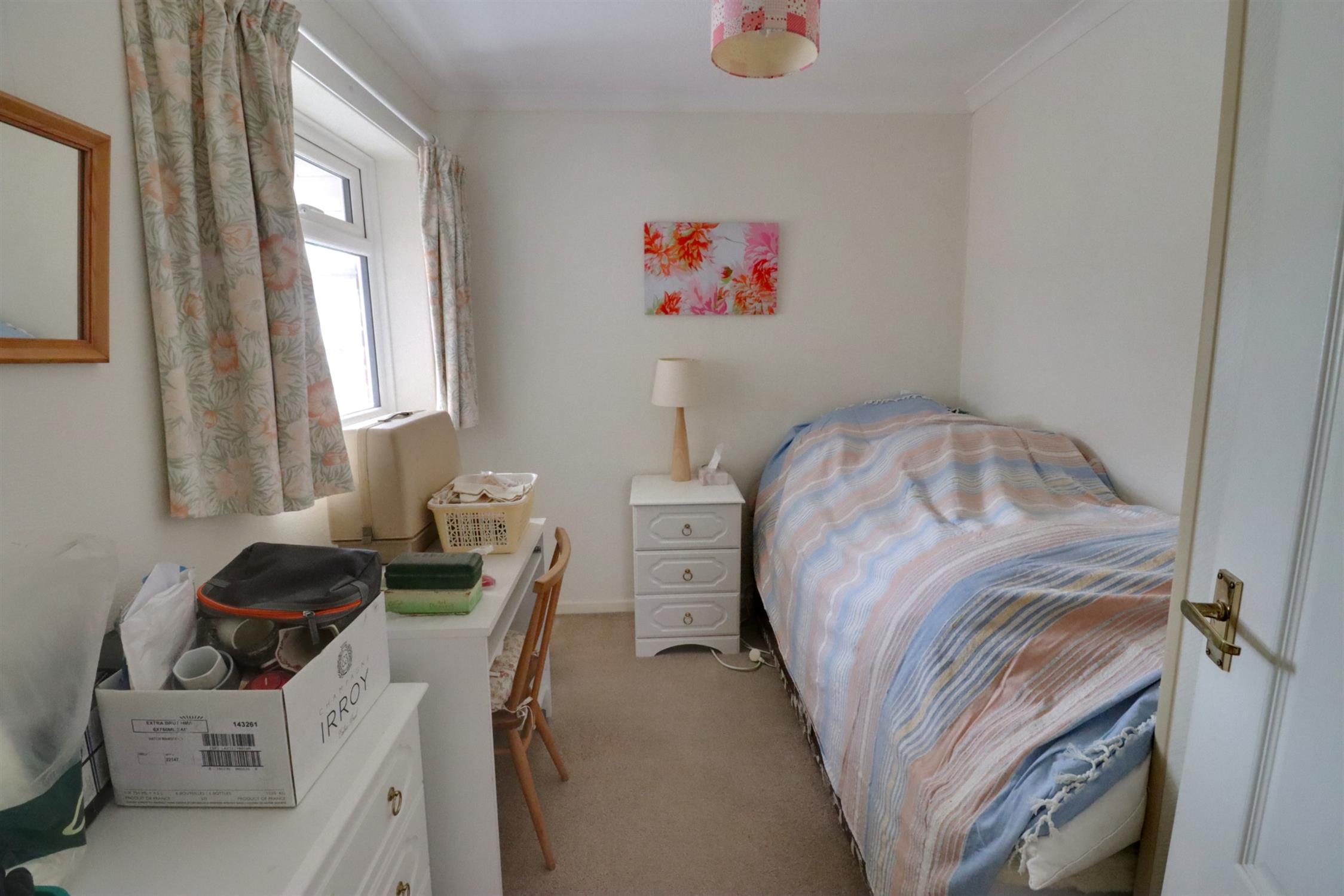Double glazed window to side, shelved cupboard/wardrobe.