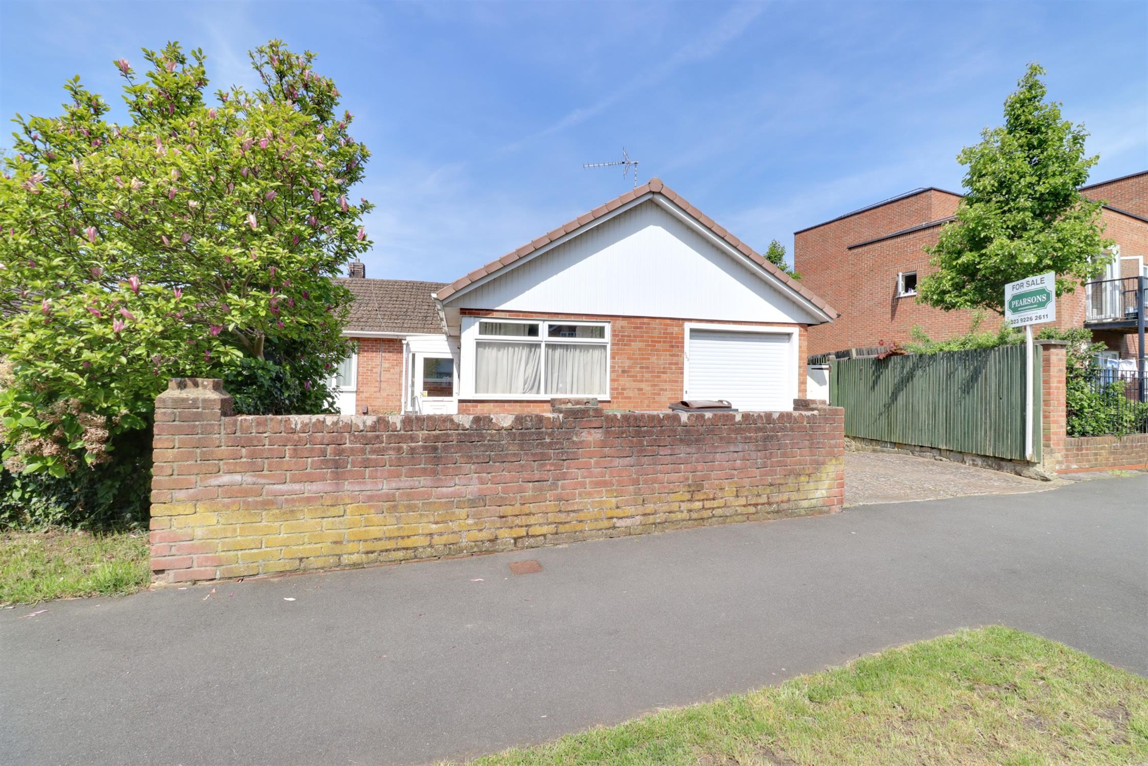 Low boundary brick wall, off-road parking for two vehicles.