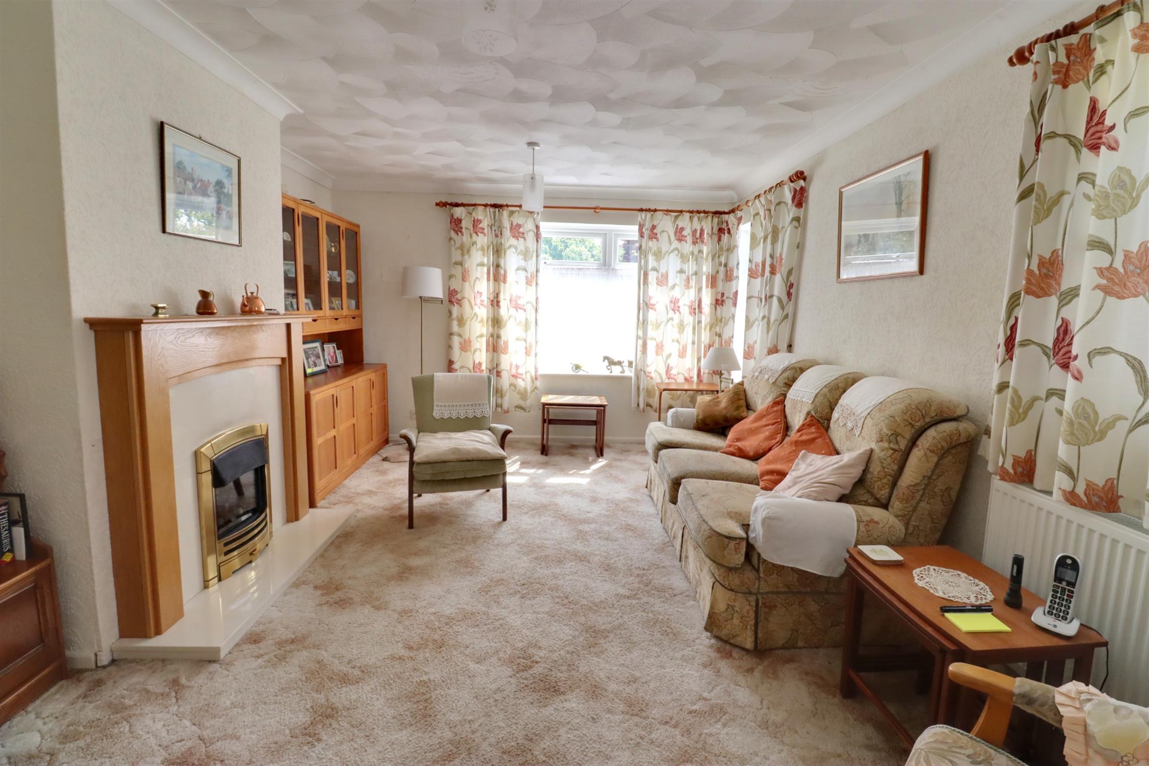 Double glazed half bay window to front, double glazed window to side, radiator, feature fireplace with timber surround and stone hearth.