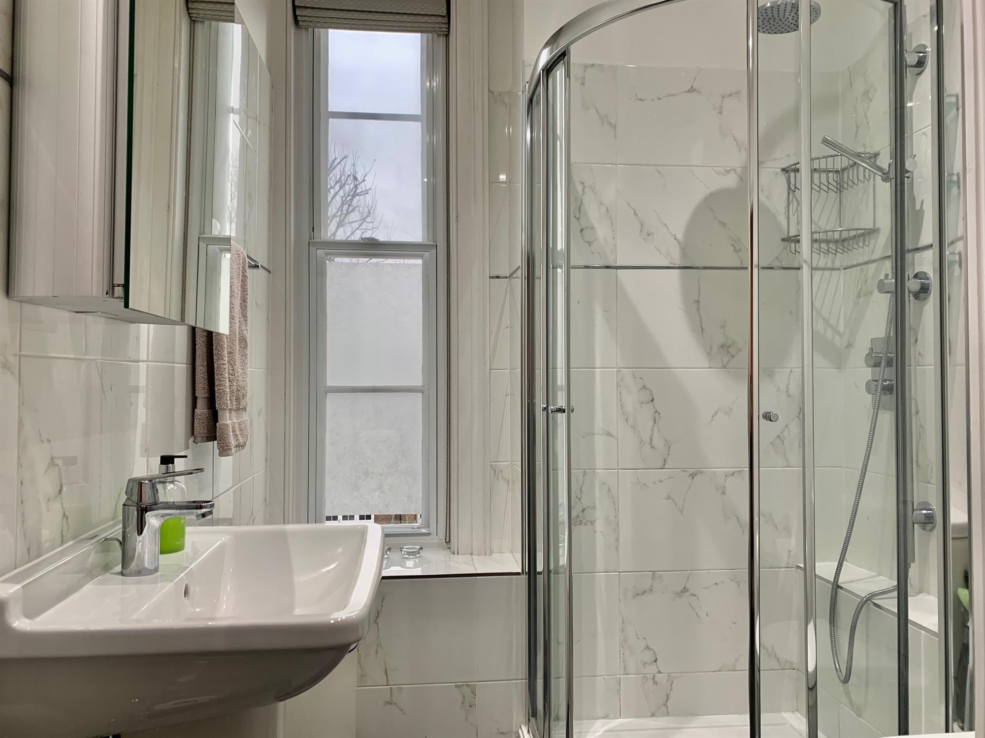 Stone steps lead from the street to a grand front door. The well-tended communal hall features an attractive staircase leading to the front door. This door is one of three doors giving access to the property.