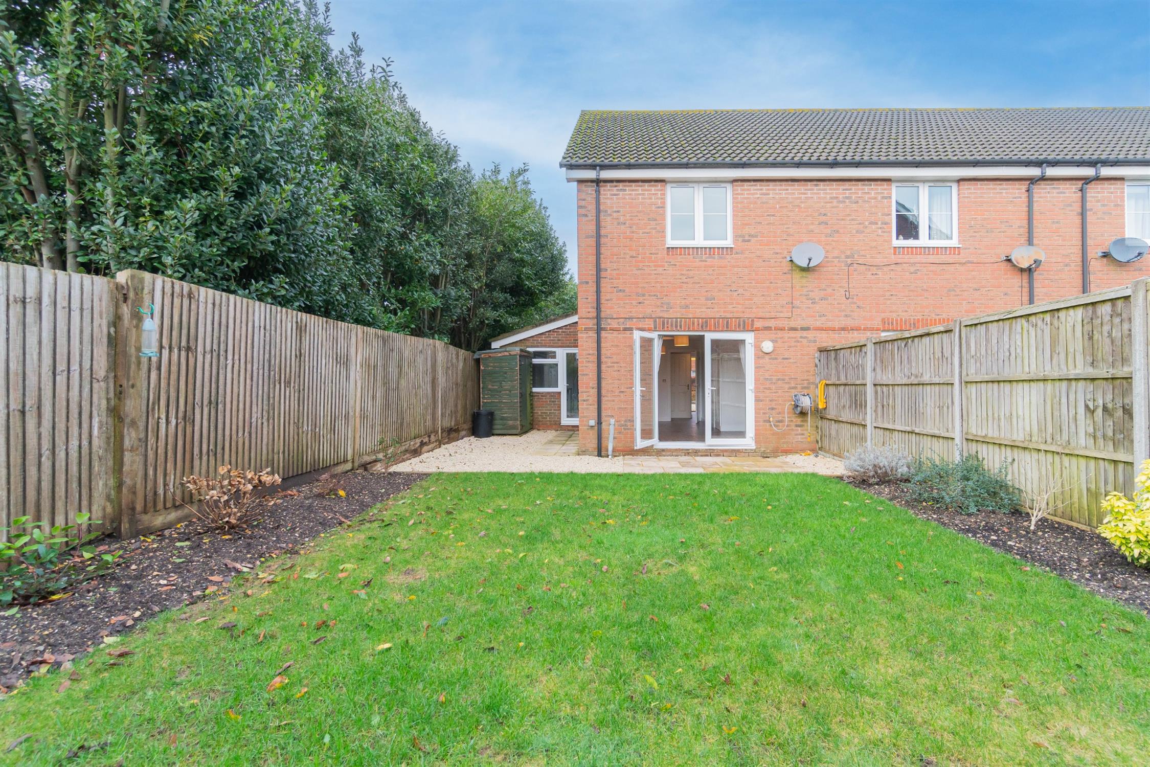 The rear garden is laid to lawn with shrubs and flowers to borders. Rear access to garden via gate. Shed and paved access to separate utility.