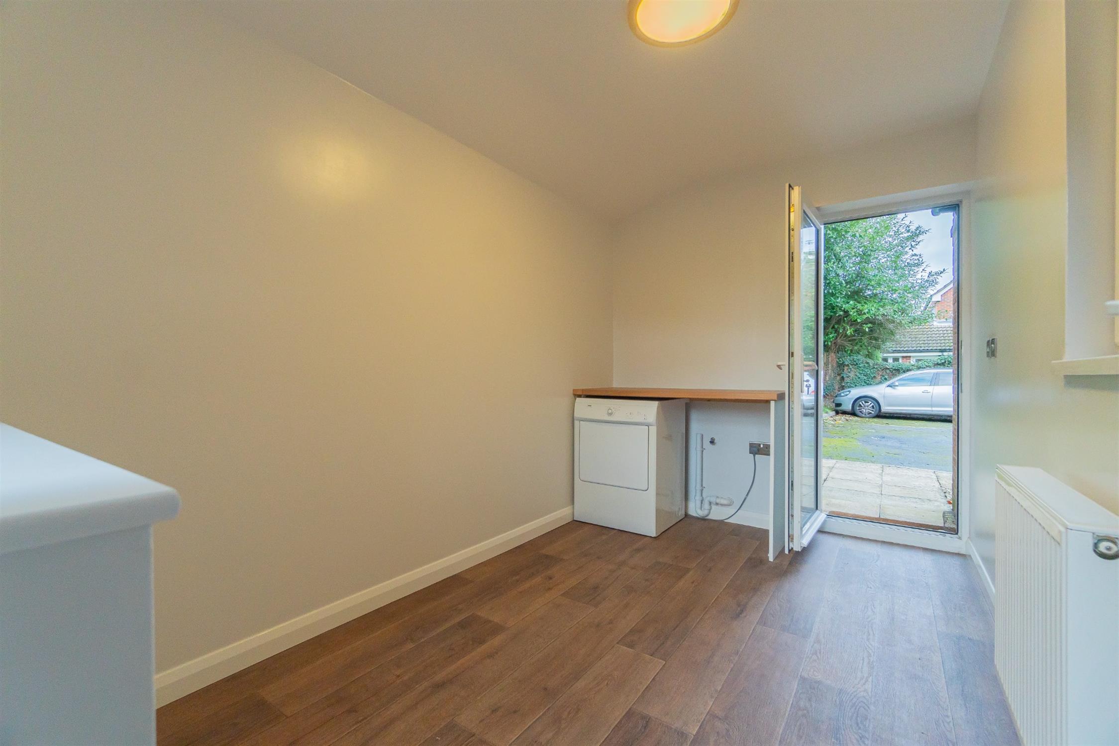 Front and rear accessed utility room with space for washing machine. Tumble dryer installed with worktop over. Potential to be used as a 3rd single bedroom. Hardwood flooring laid to floor.