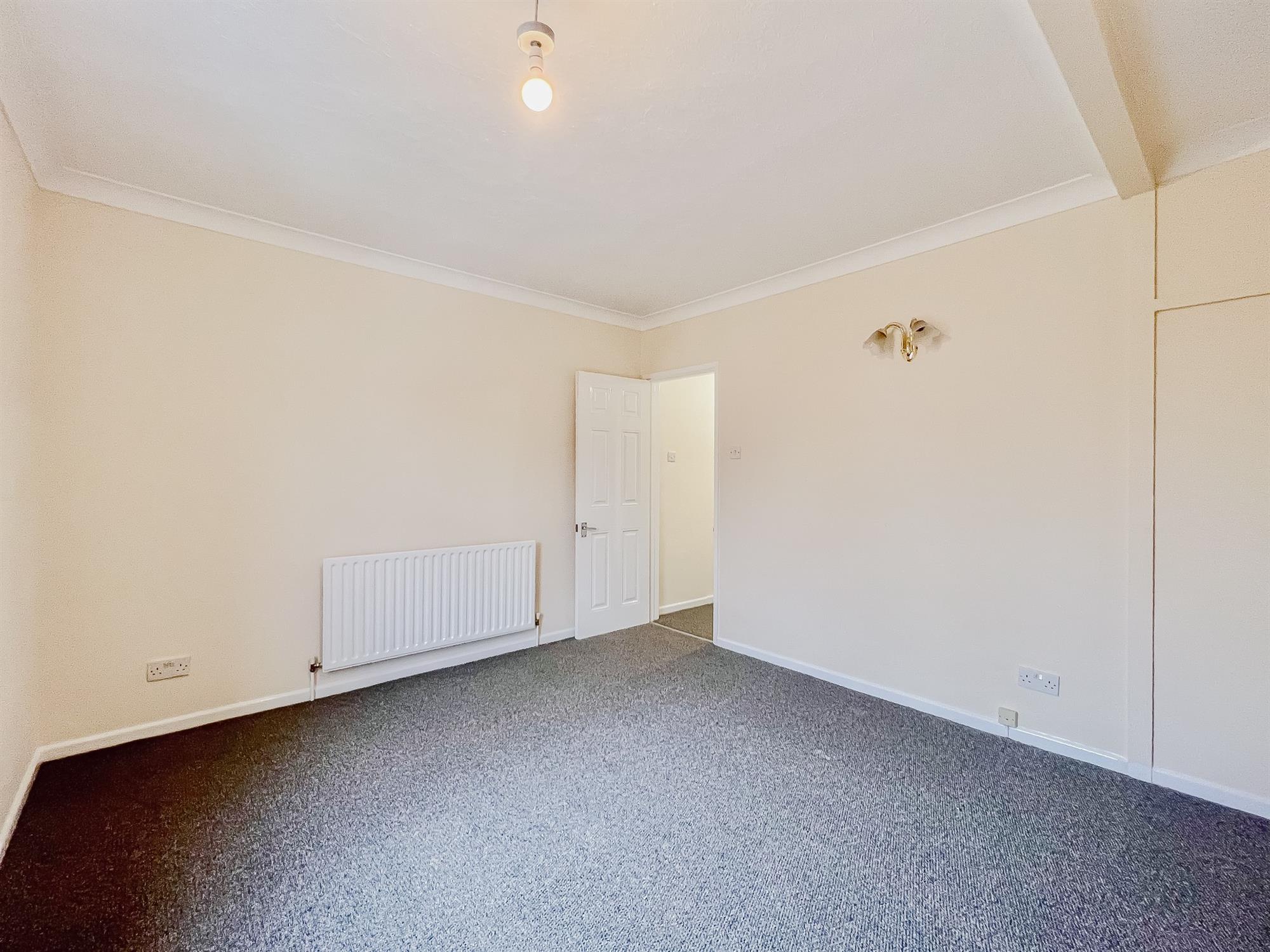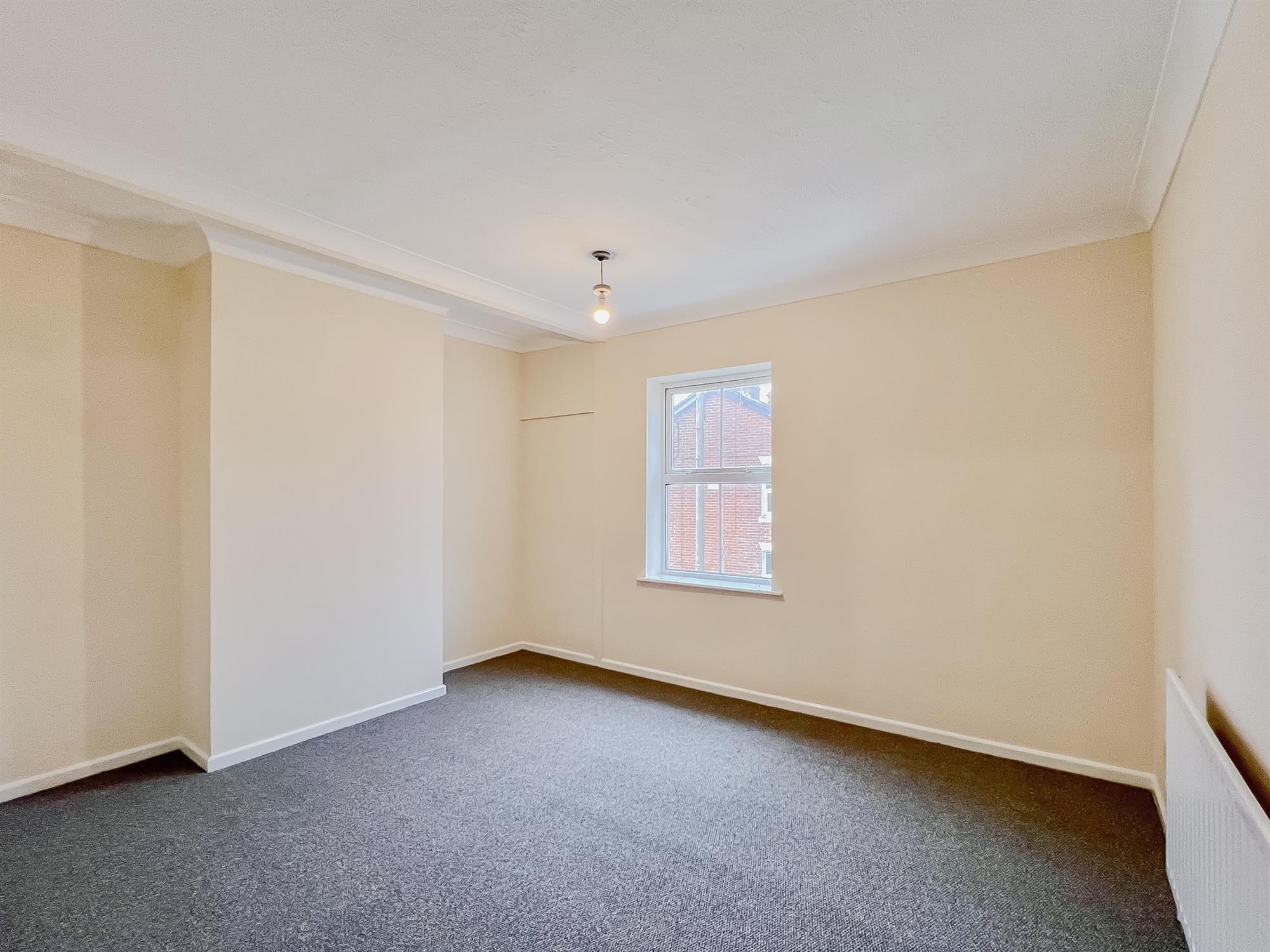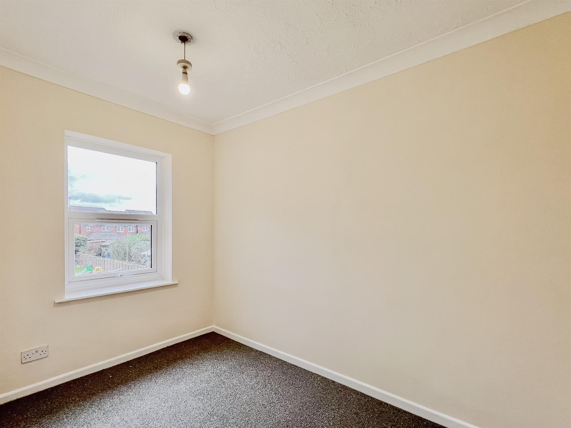 A newly decorated single bedroom with pendant light, window to the rear and radiator. Carpet laid to floor.