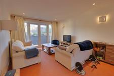 Double glazed window to front aspect. Double glazed French doors with double glazed full height windows opening onto balcony. Coving to smooth ceiling with recessed lighting. Radiator.