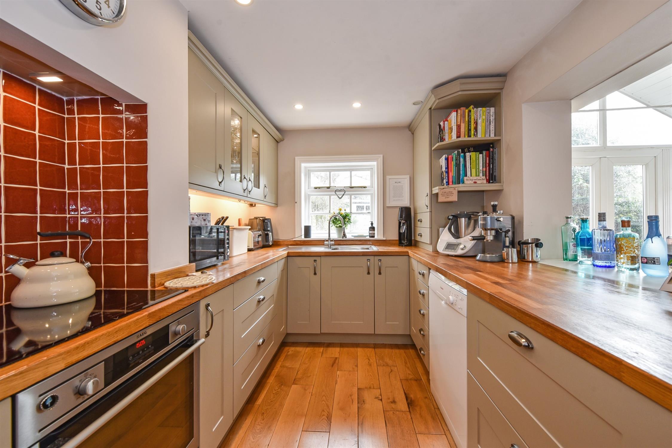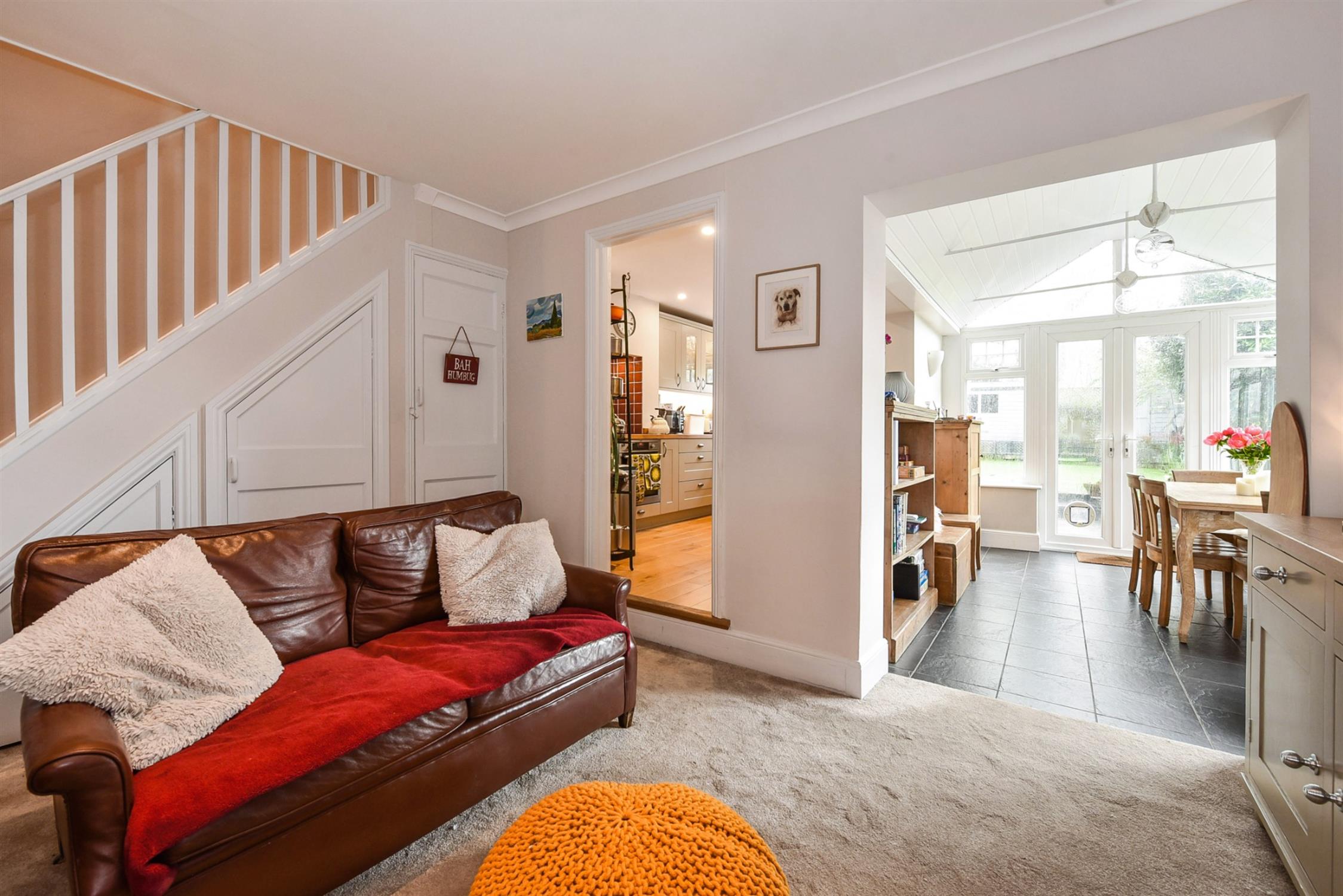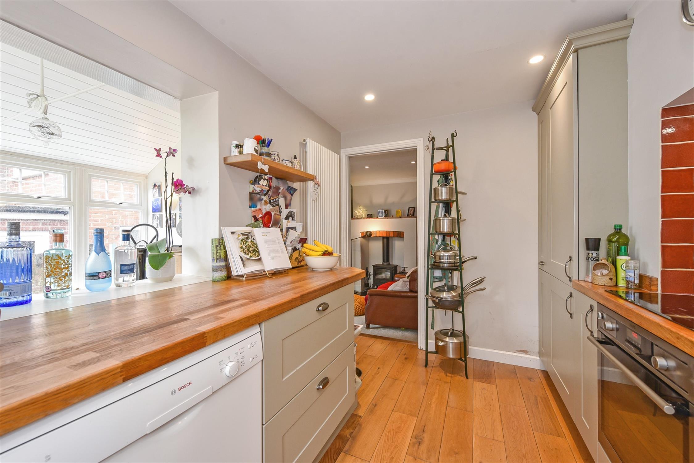 Upon entry through the front door, there is a hall leading to all ground floor accommodation and stairs rising to the first floor. To the front of the property, there is a cosy sitting room with a feature fireplace and a large bay window which allows ample light into the space. The family room is fitted with a wood burner with exposed brick mantle and plenty of under stair storage. An opening leads from the family room to the garden room which is a bright and airy space with a cathedral pitch roof and dual aspect windows. From here, there are French doors to the rear garden. The kitchen is fitted with a range of eye and low-level shaker style units with a solid wood top, integrated appliances, and further space for additional appliances.