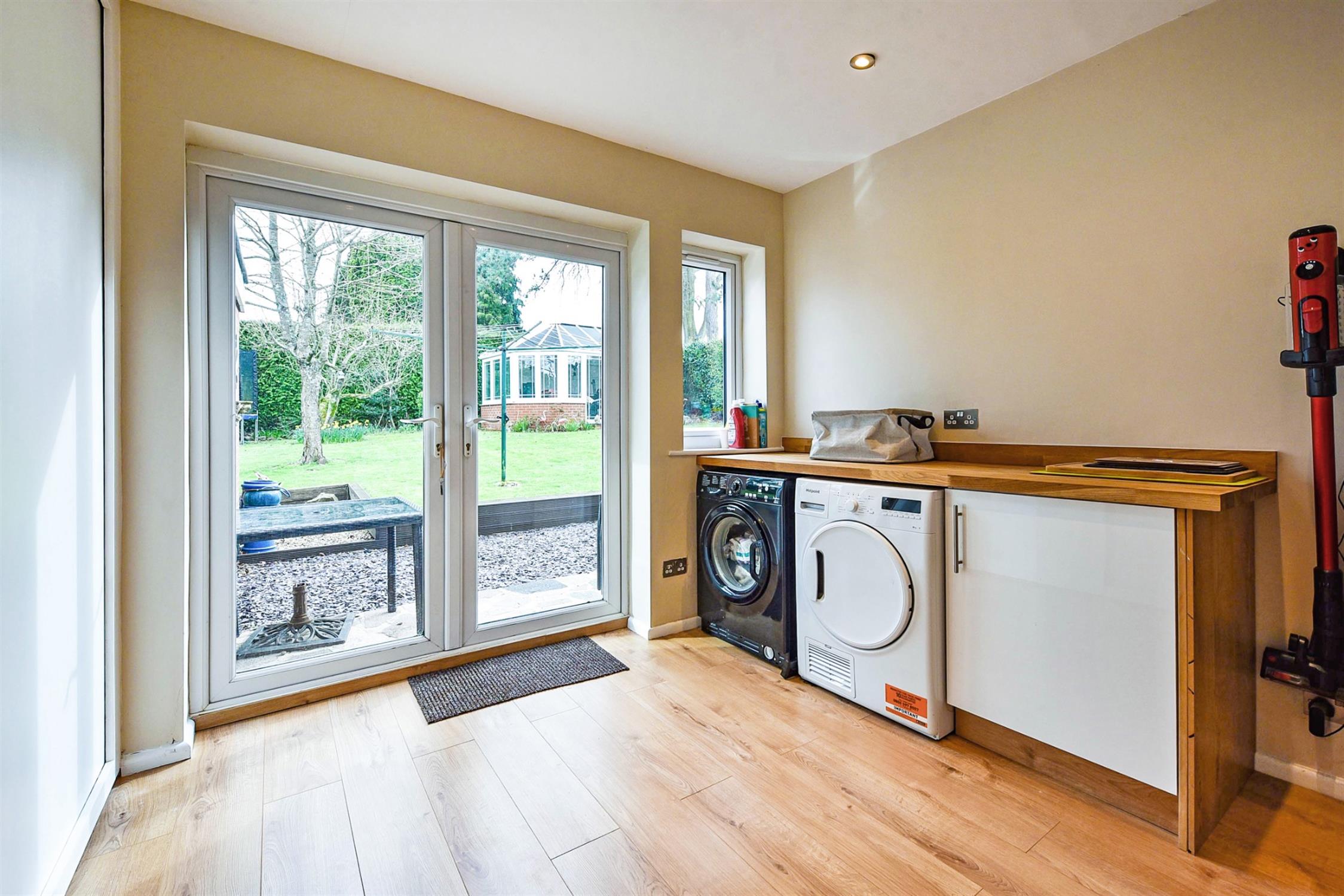 Moving back through the hall, there is a large utility room, with ample storage and door to the garden. This room could be easily repurposed into a study or another bedroom if the utilities were resited. Next to this room is a family bathroom.