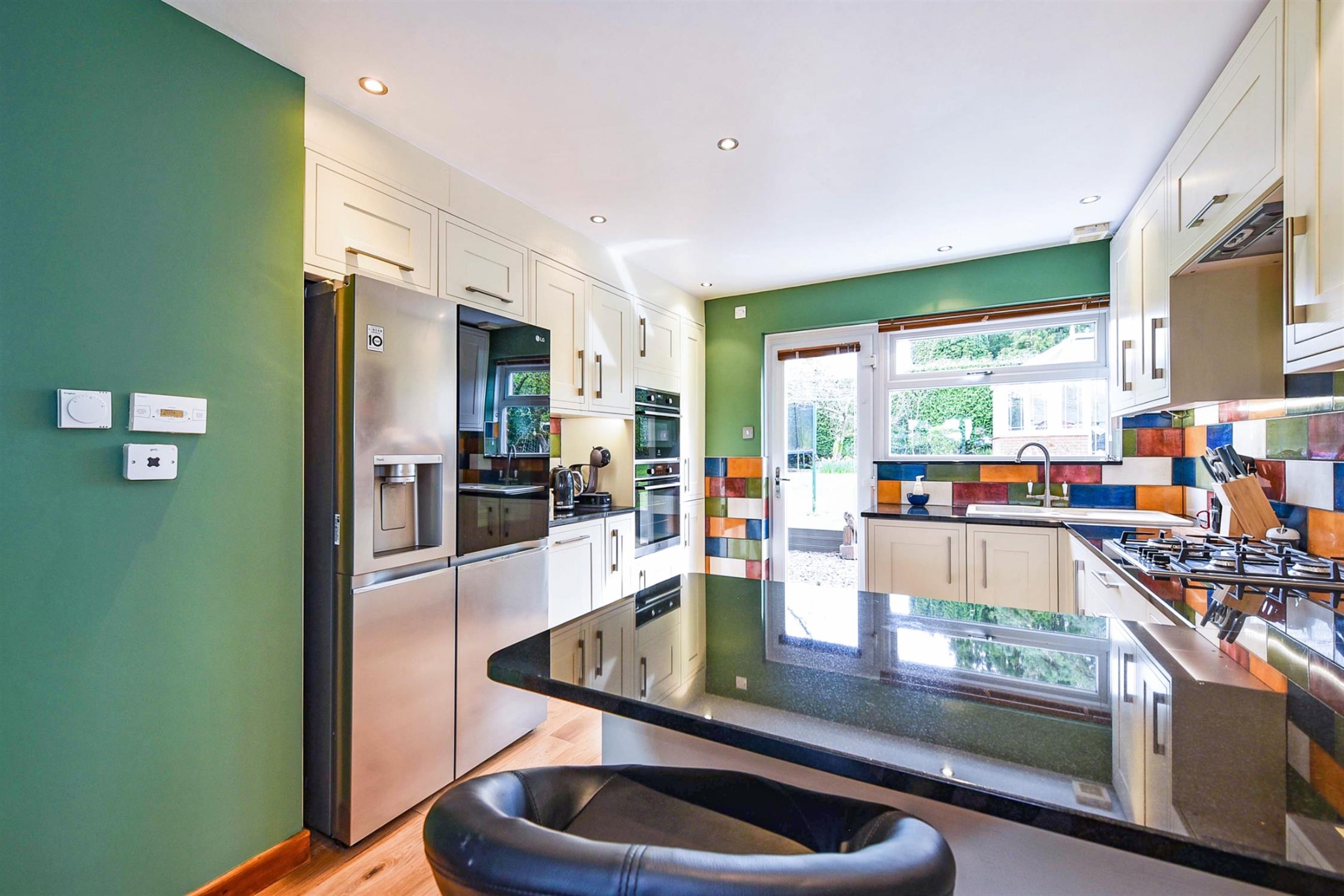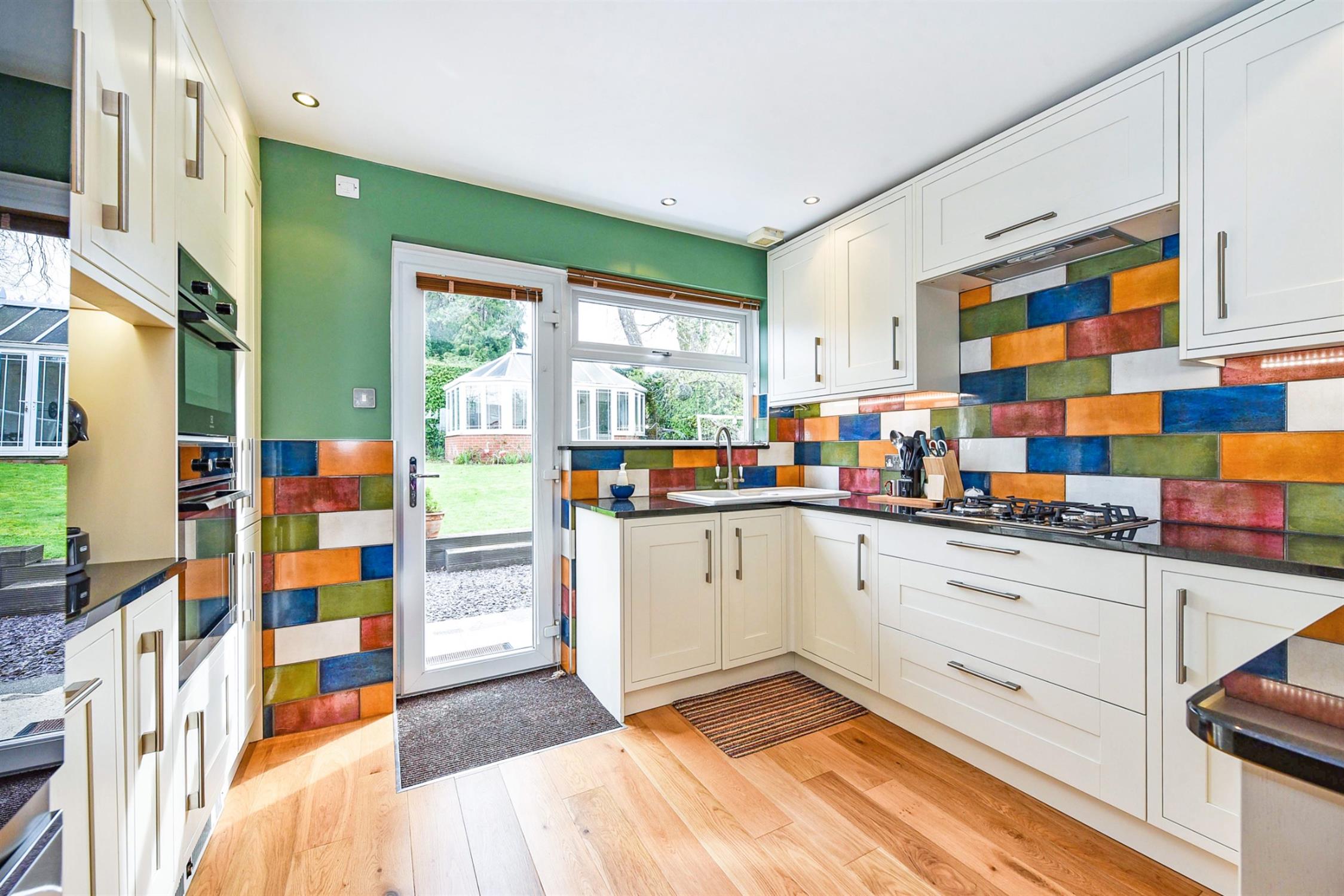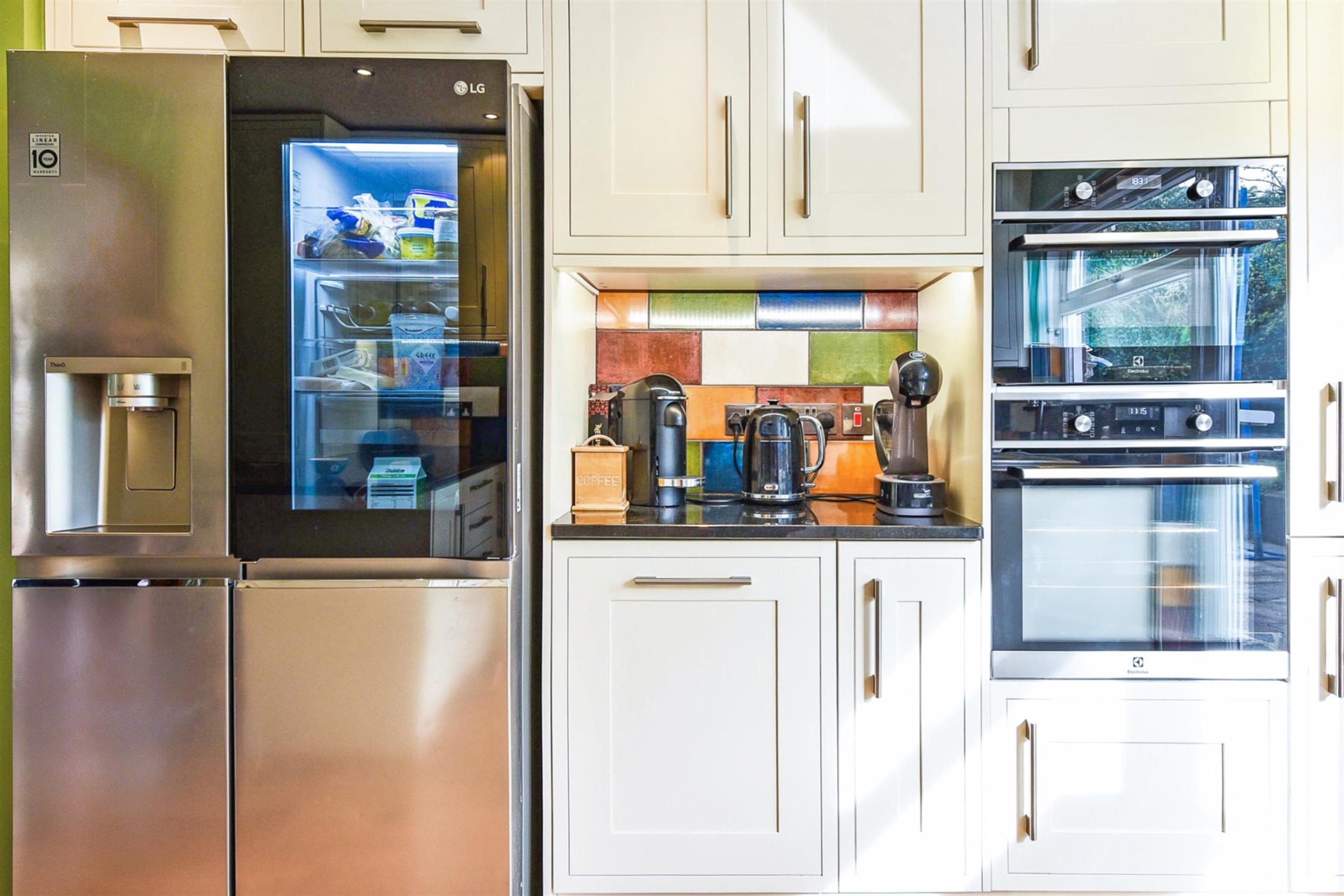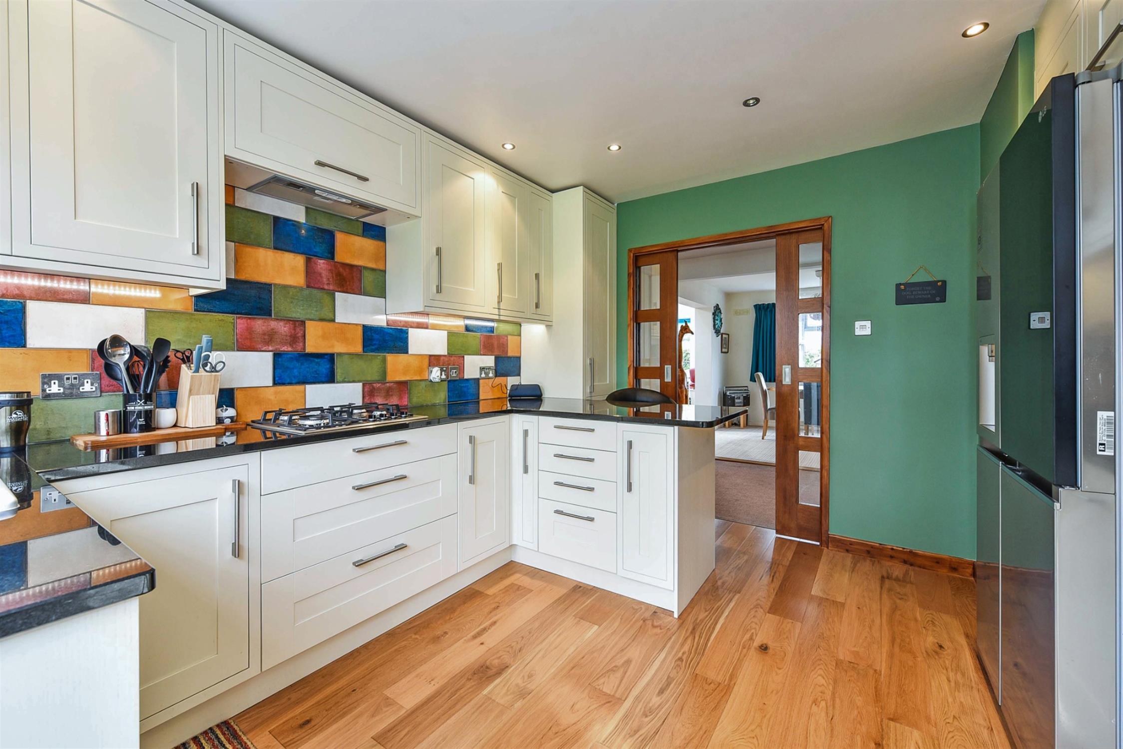 From the driveway, there is a glass/walled atrium hall that strikes an attractive pose to the front of the house. Going through a bespoke hand-made internal door leads to the central hall, which connects all accommodation. Double doors lead through into the open-plan reception spaces. This is the heart of the house, with three distinct areas all openly connected. The living area has a woodburner and doors to the garden, there is a bright sitting area adjacent, with door to the garden and pitched roof with four Velux skylights. The dining area benefits from its own aspect and door to the hall, so could be easily converted into an enclosed room. The kitchen has been fitted to a high-standard, with double oven, solid granite worktops, LED accent lighting and engineered oak flooring. There is a door to the patio and garden.