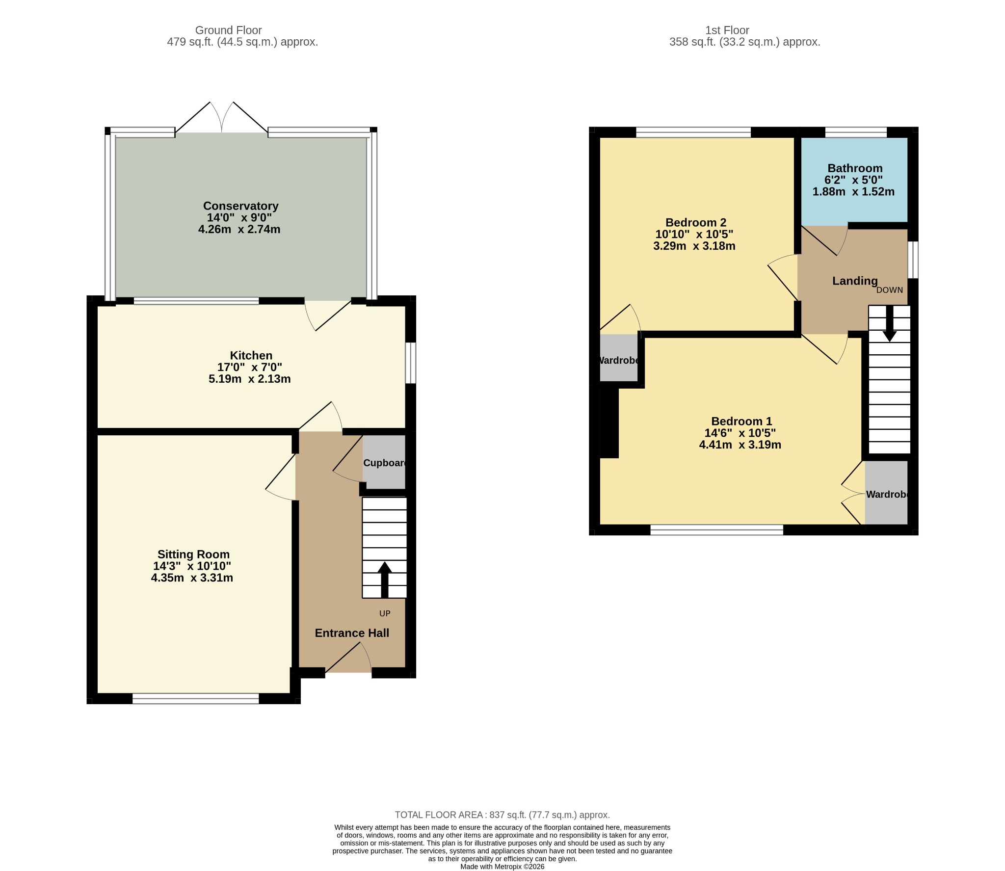 Fully double glazed with French doors opening into the garden.
