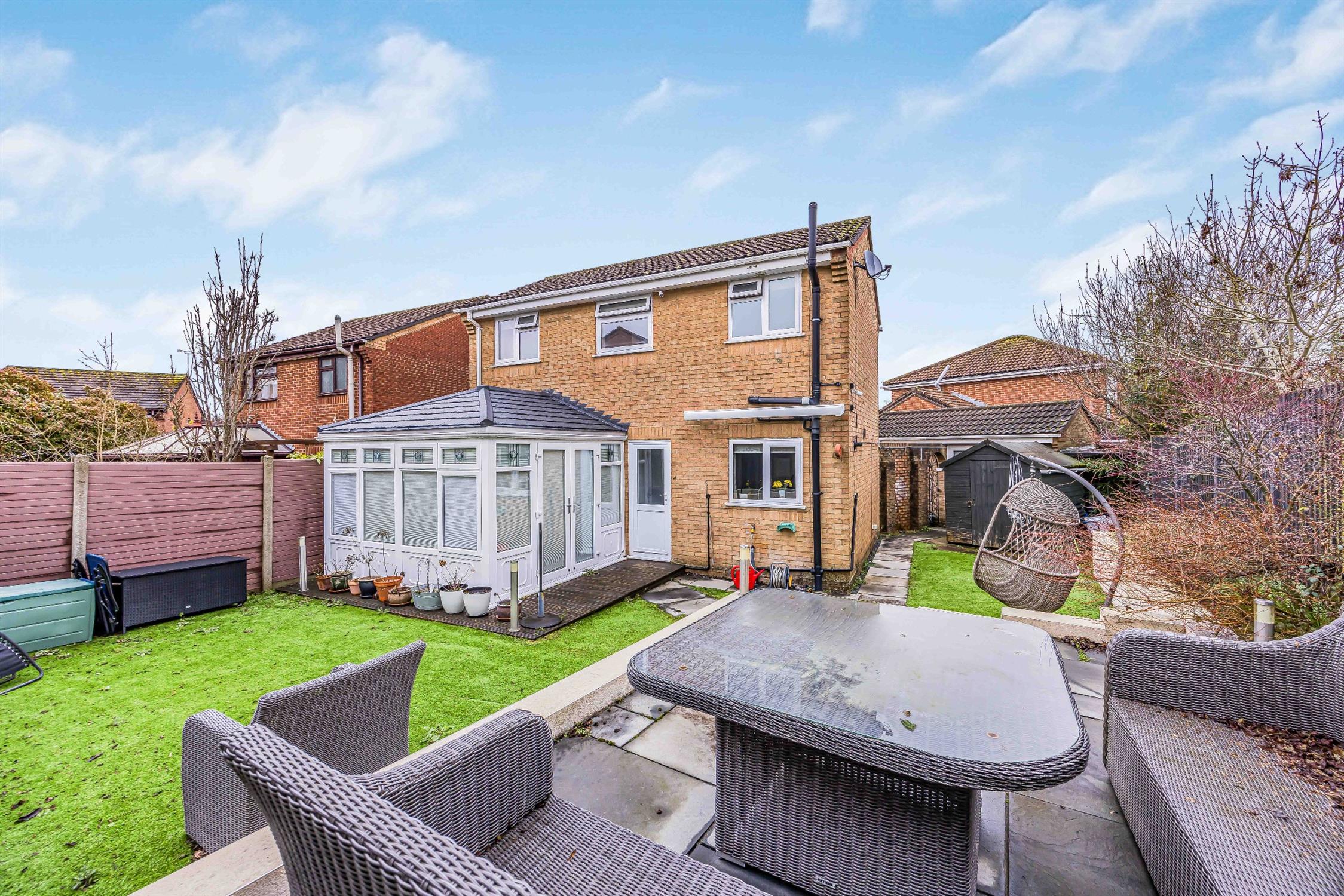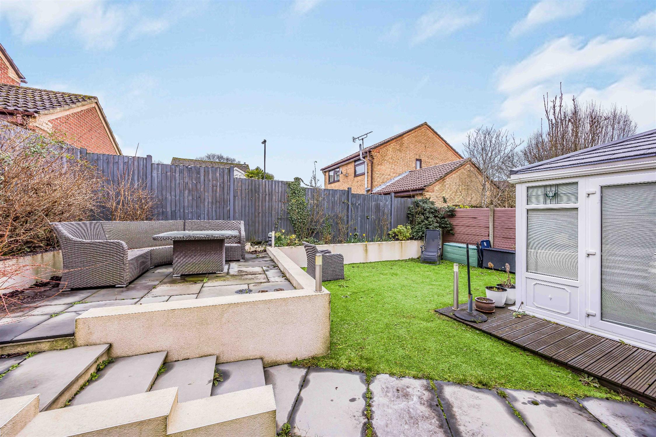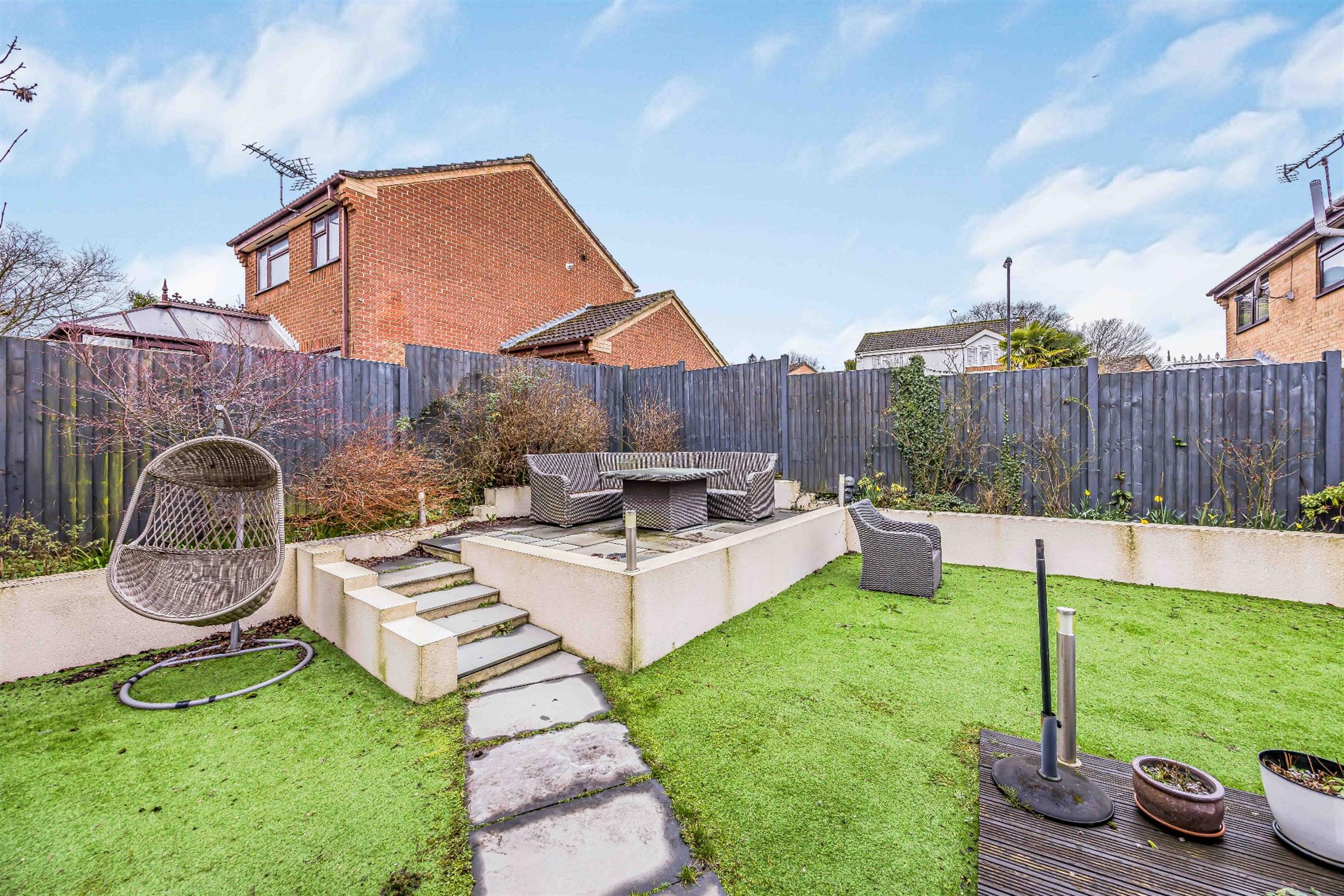 The rear garden is fence enclosed, mainly laid to artificial grass, and enjoys a raised patio.