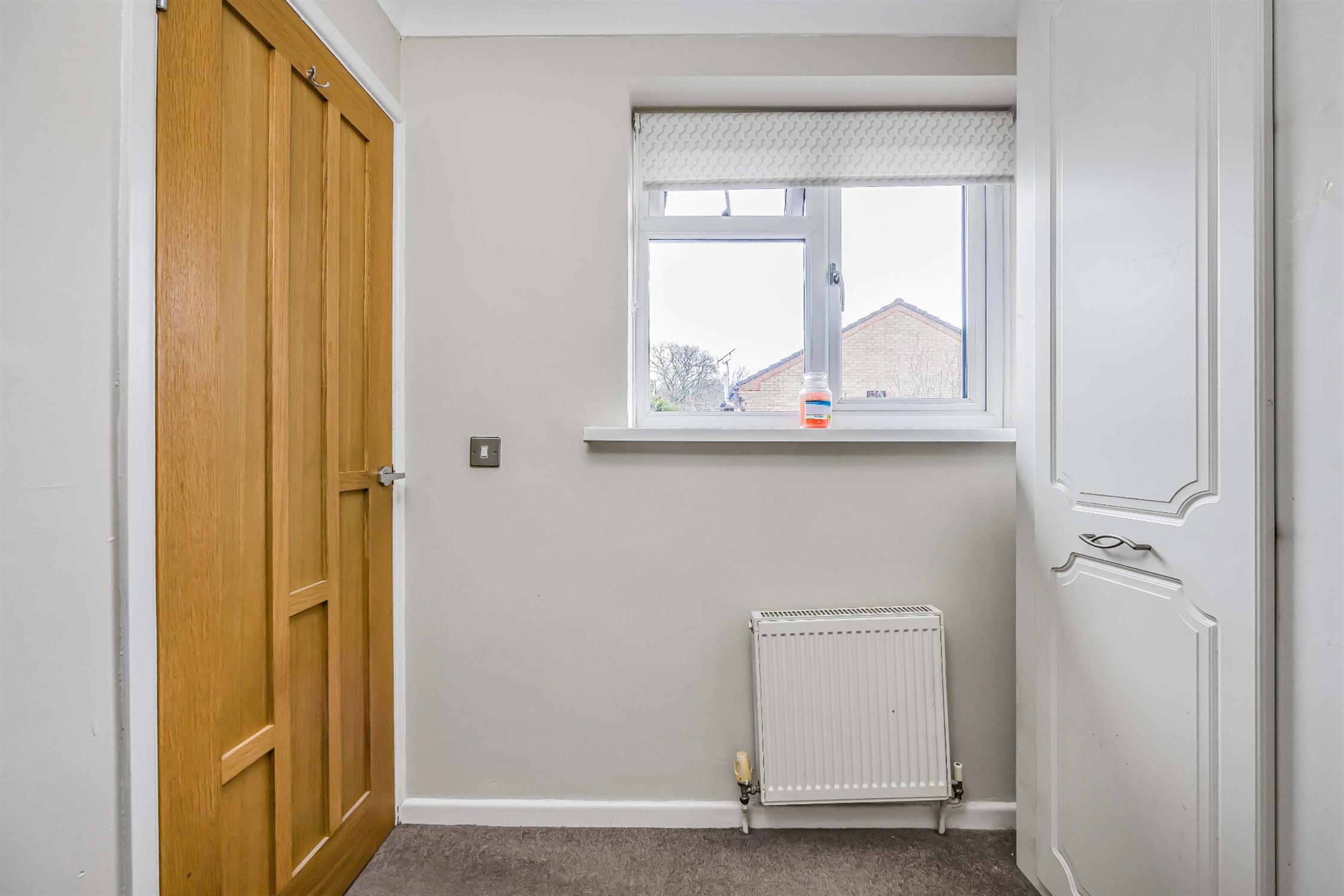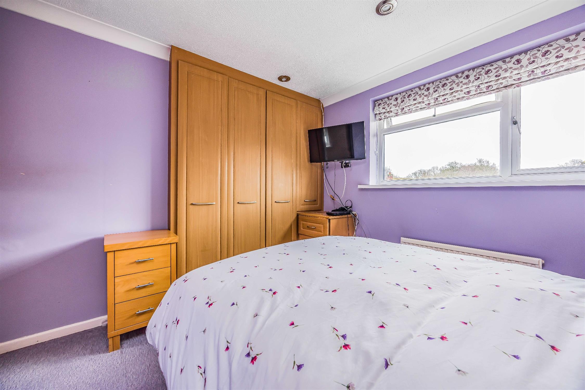 Textured ceiling, coving, double glazed window to the rear aspect, radiator, built in cupboard space, carpeted flooring.
