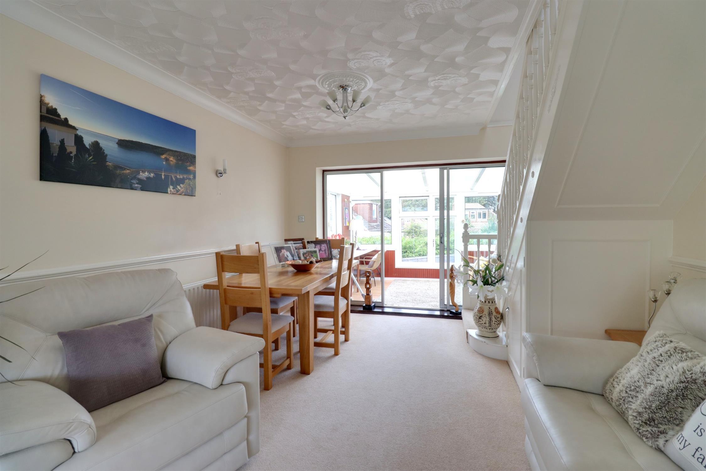 Front aspect double glazed bay window with window seat, radiator, rear aspect double glazed patio doors leading to the conservatory, stairs leading to the first floor.