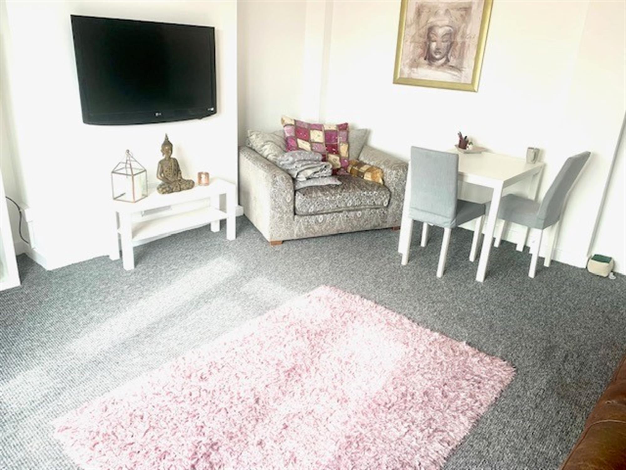 LOUNGE/DINER Carpeted. Large window to front. Furnishings to include: Sofa / table & chairs / TV unit / bookcase / TV.
