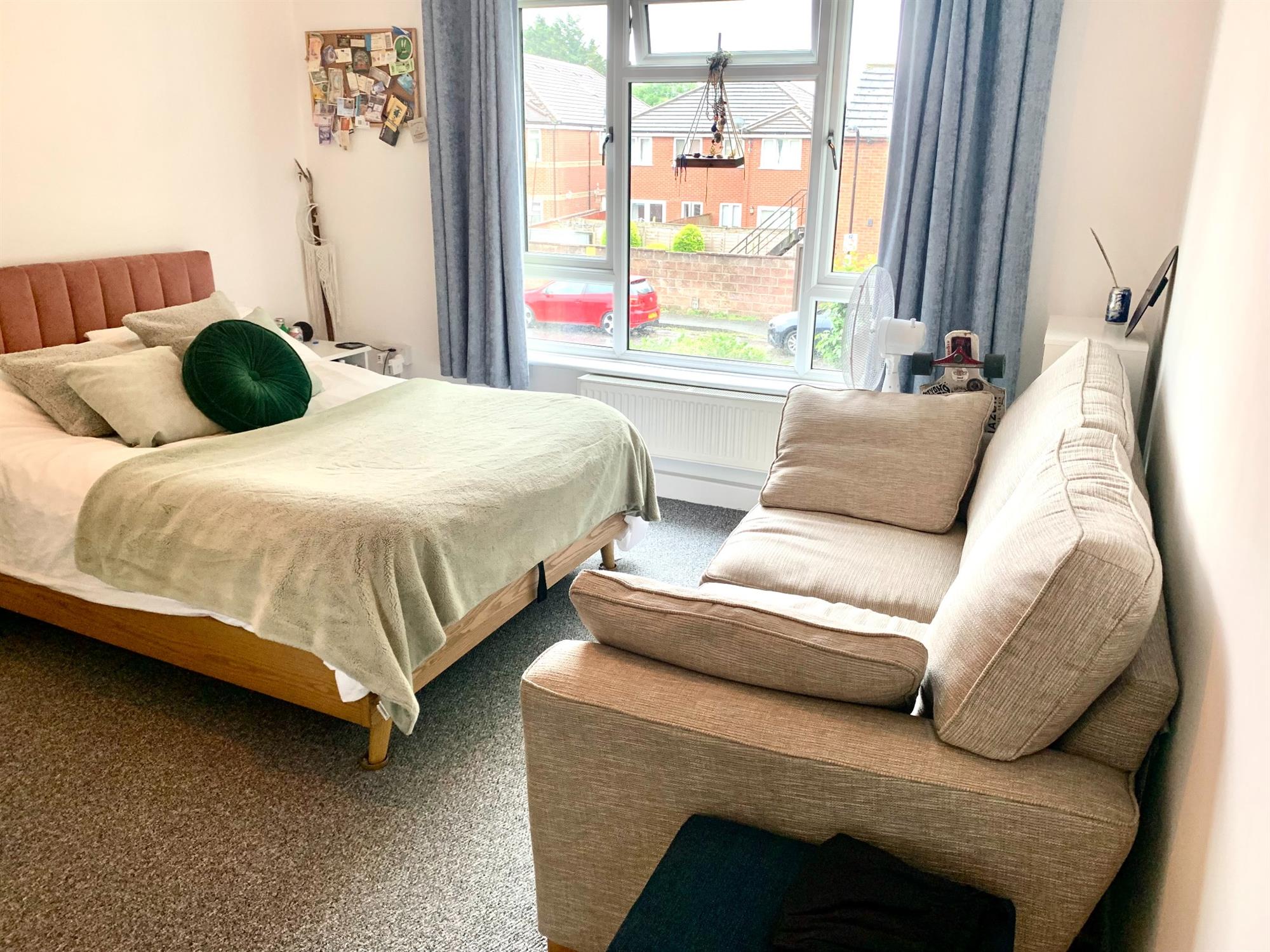 Double bedroom with window to rear and carpeted. Furnishings to include: Double bed, wardrobe and chest of drawers.