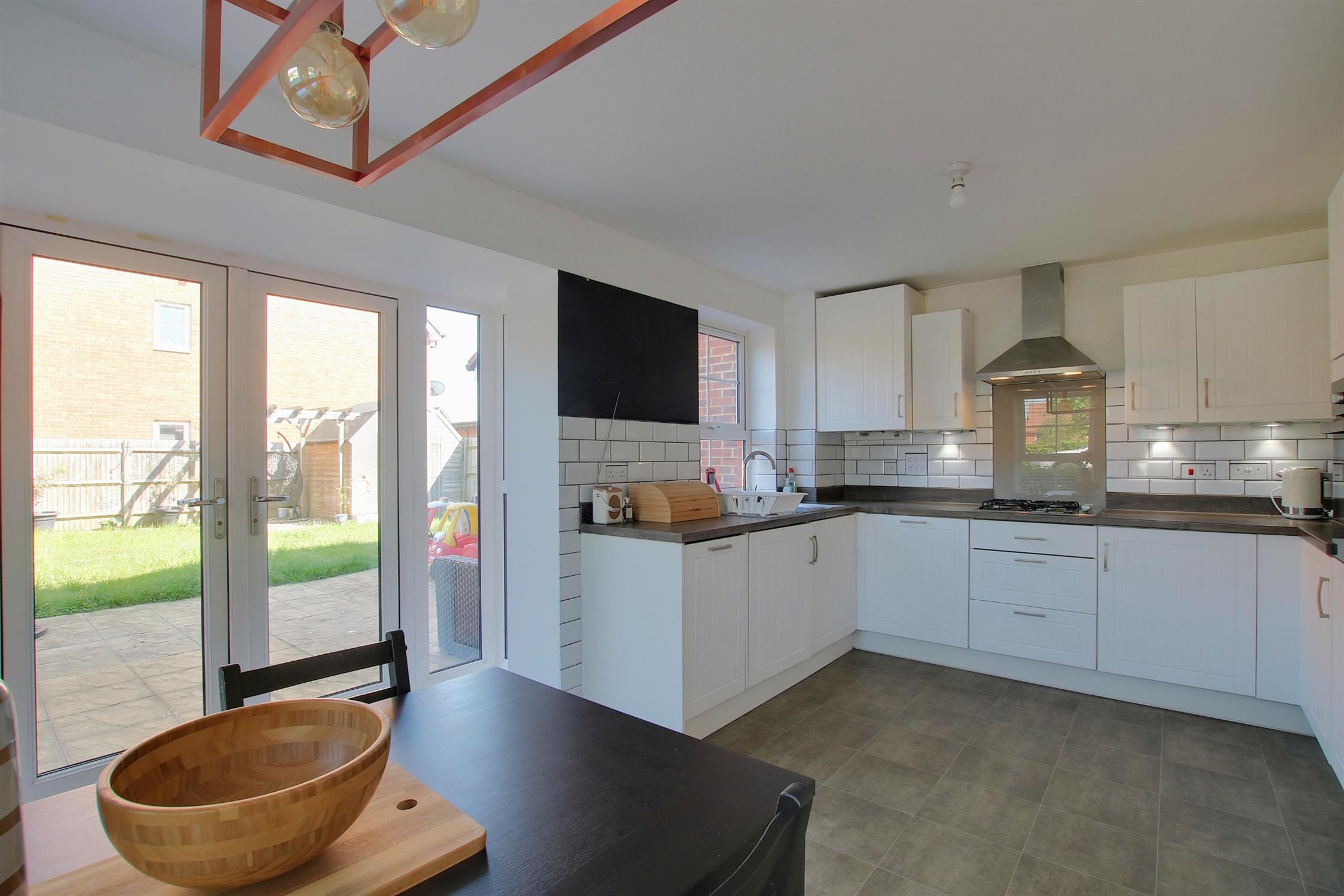 The ground floor comprises a bright and spacious kitchen/diner with integrated appliances and patio doors opening onto the rear garden, perfect for families and entertaining. There is also a welcoming, light-filled living room and a convenient downstairs cloakroom.