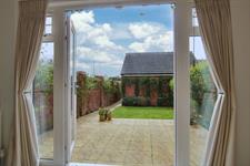 The main entrance opens into a welcoming hall with stairs to the first floor and an adjoining WC. The kitchen enjoys a front-facing aspect and is fitted with contemporary wall and floor units housing a range of integrated appliances that includes an electric oven, 4-ring gas hob with stainless steel extractor hood above, fridge/freezer, dishwasher and washing machine; the central heating boiler is housed in a larger wall unit. The sitting/dining room is positioned overlooking the patio terrace and south-facing rear garden accessed through French doors. A large under stairs cupboard provides useful storage.