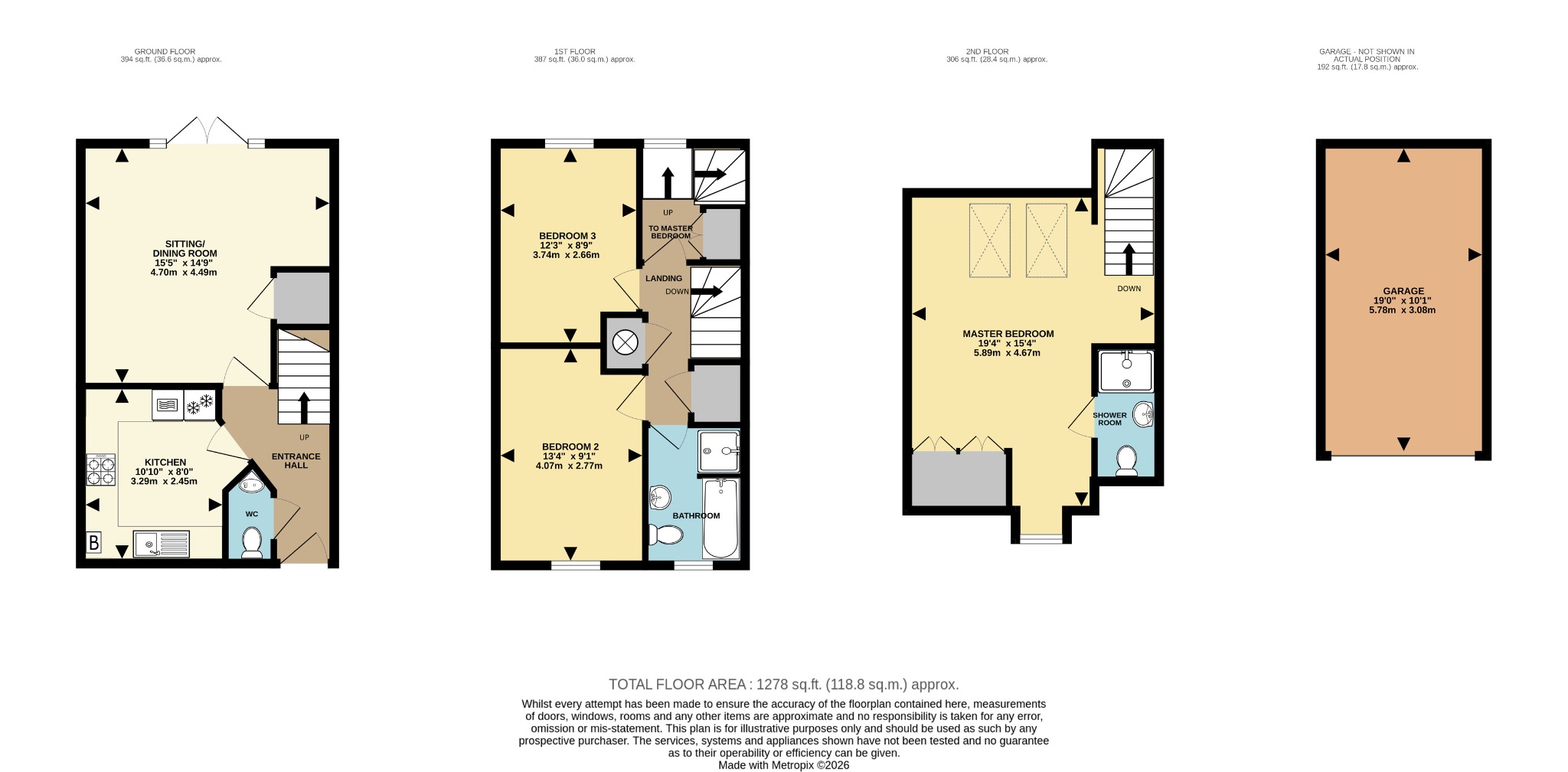 The first floor landing houses a large over stairs cupboard, a separate cupboard housing the pressurised hot water cylinder, and private access to the master bedroom suite. On this floor there are also two double bedrooms and a well-appointed family bathroom with an attractive suite that includes both a bath and separate tiled shower cubicle. The master bedroom occupies the entire top floor and is flooded with light by two Velux windows to the rear and a dorma bay window to the front. Our client has had wardrobes fitted and there is a stylish en-suite with large shower cubicle, pedestal wash basin, WC and complementary tiling.