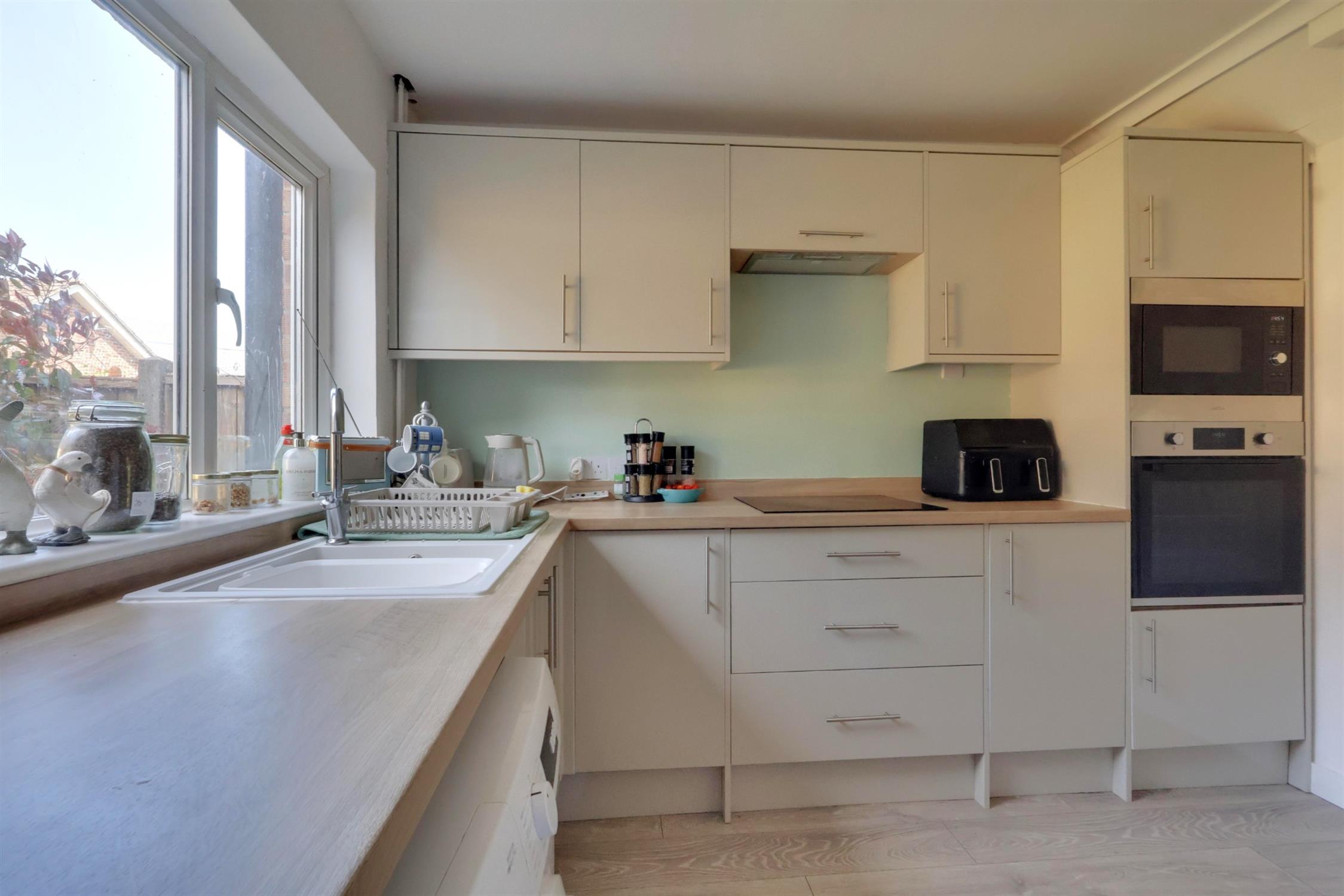 Double glazed window and is fitted with a range of wall and base units with roll-top work surfaces over. There is a sink with mixer tap, ceramic hob with extractor over, built-in double eye-level ovens, space for a washing machine, space for a fridge freezer, and a wall-mounted boiler. A door leads through to the inner lobby, which provides access to the separate cloakroom, side access to the gardens, and a secondary entrance.