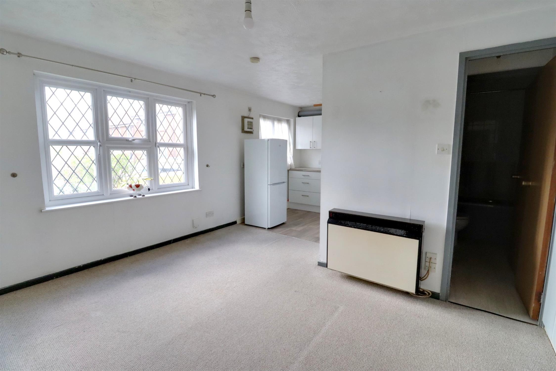 A purpose built ground floor studio flat with its own entrance, own private garden and allocated parking. The accommodation comprises porch, lounge/bedroom with fold-down bed - mattress not included and various storage, modern kitchen with integral over and hob, inner hall with further storage and bathroom. There is a good sized private garden and nearby allocated parking for one car.