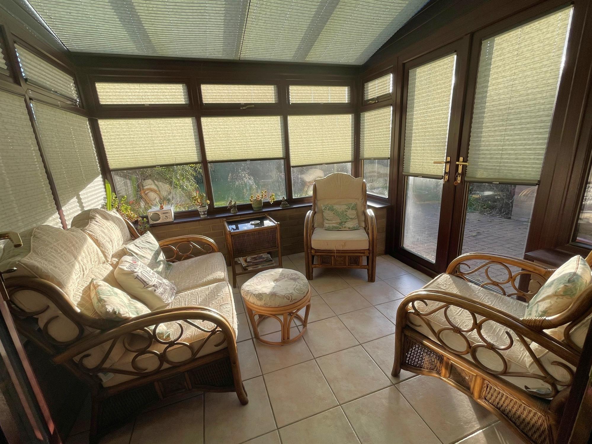 Of brick and UPVC construction. Tiled Floor. Double doors to garden.