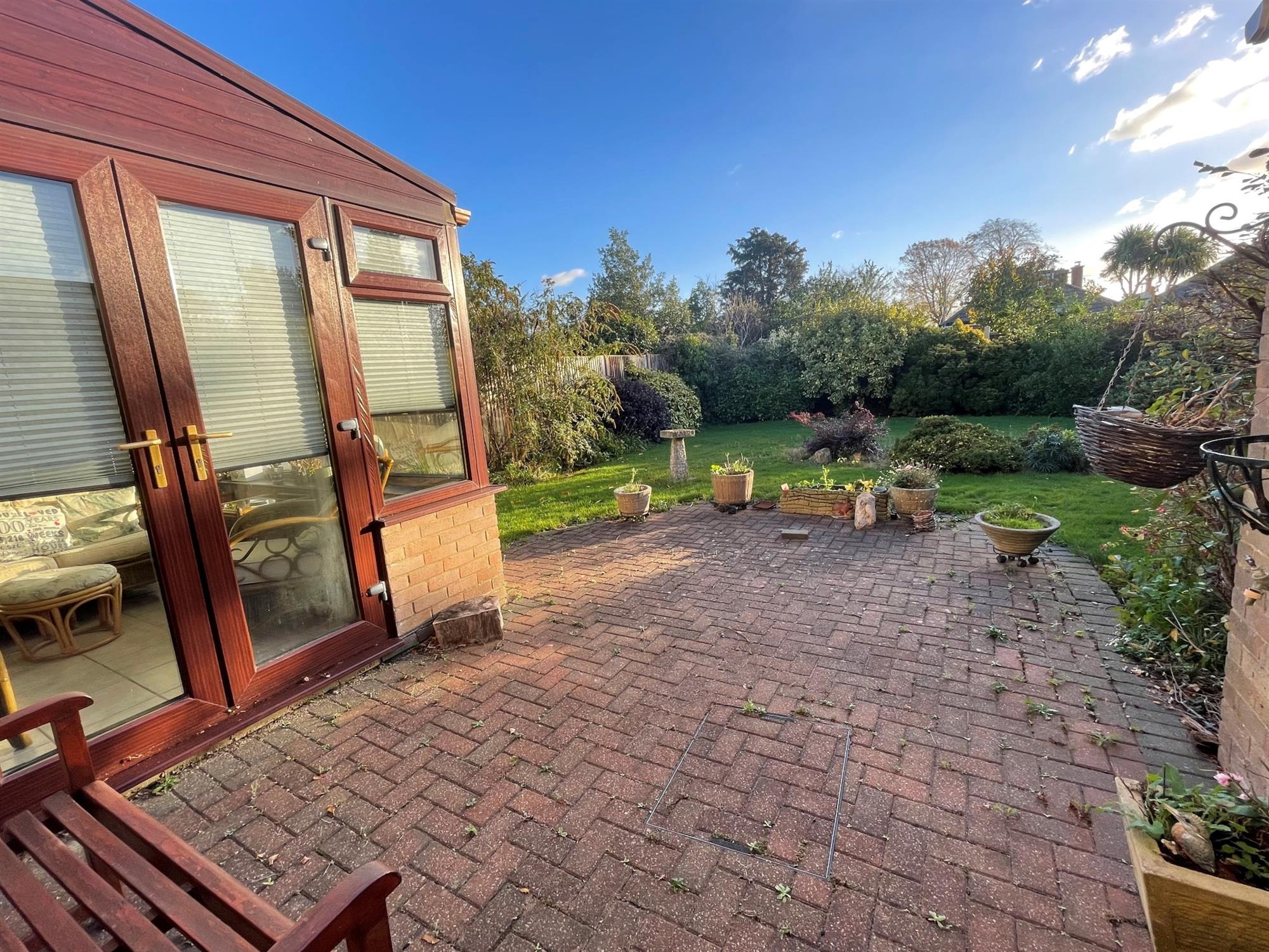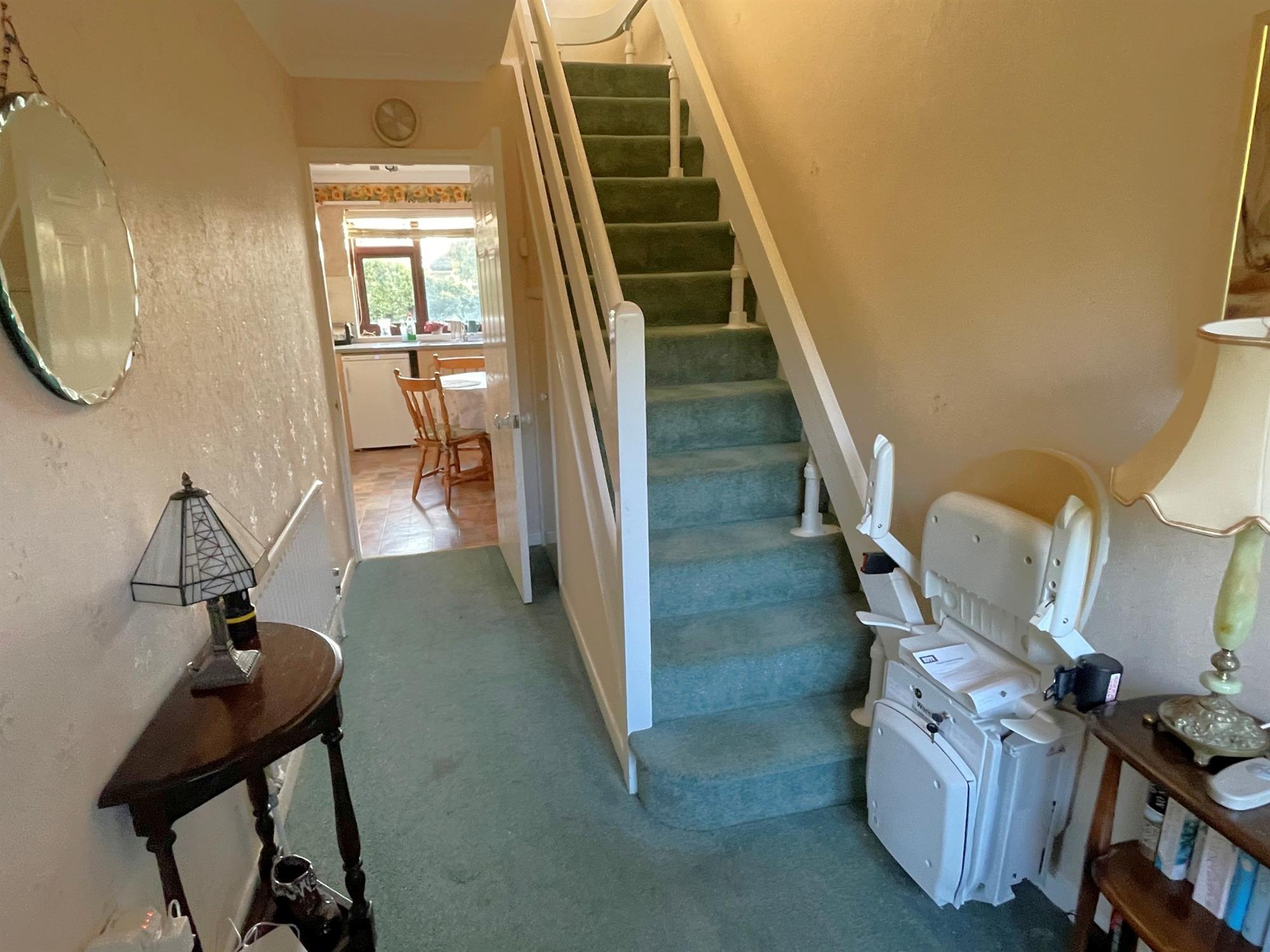 Laid to lawn with shrubs and bushes. Block paved driveway offering off-road parking and leading to: