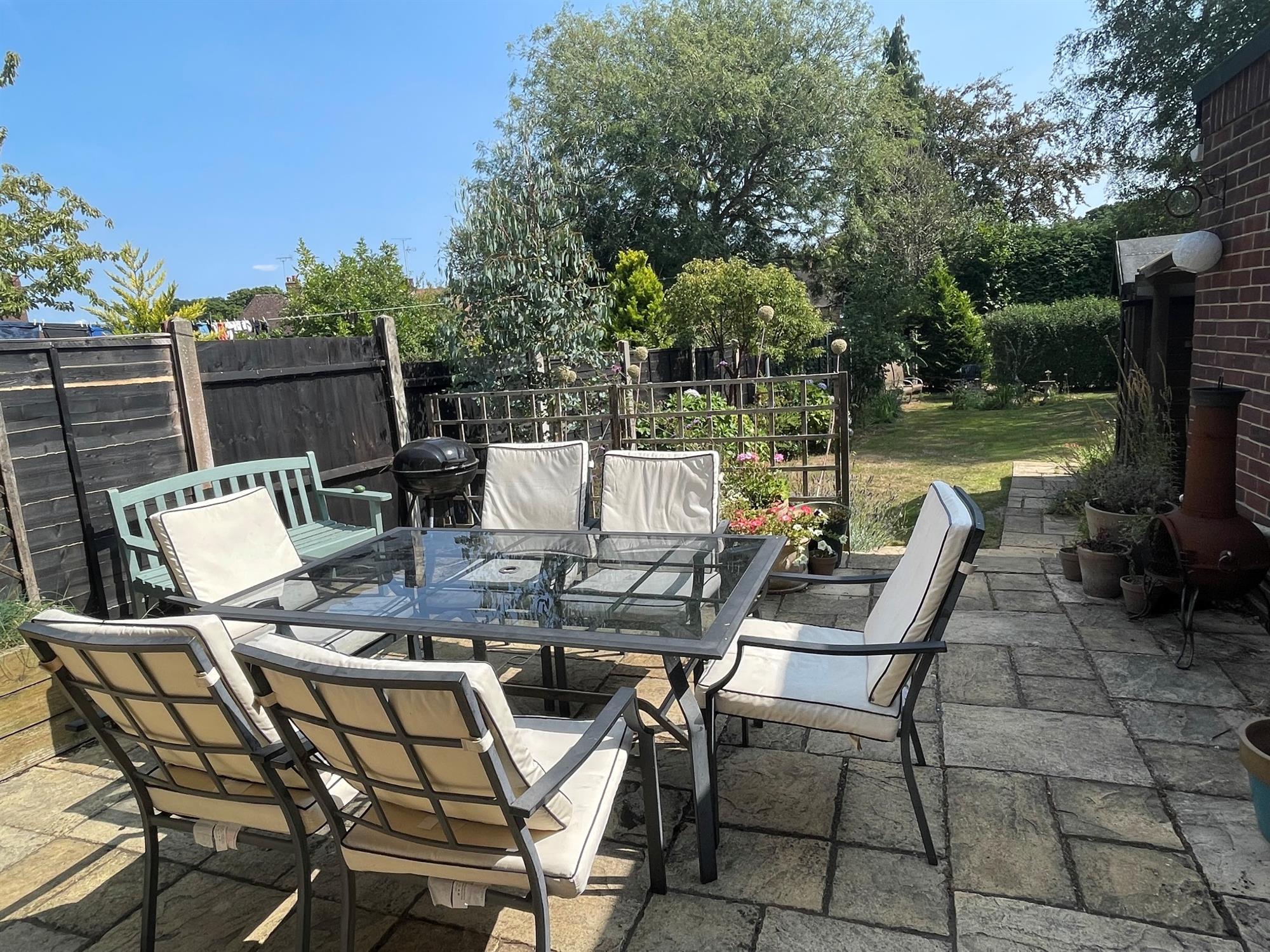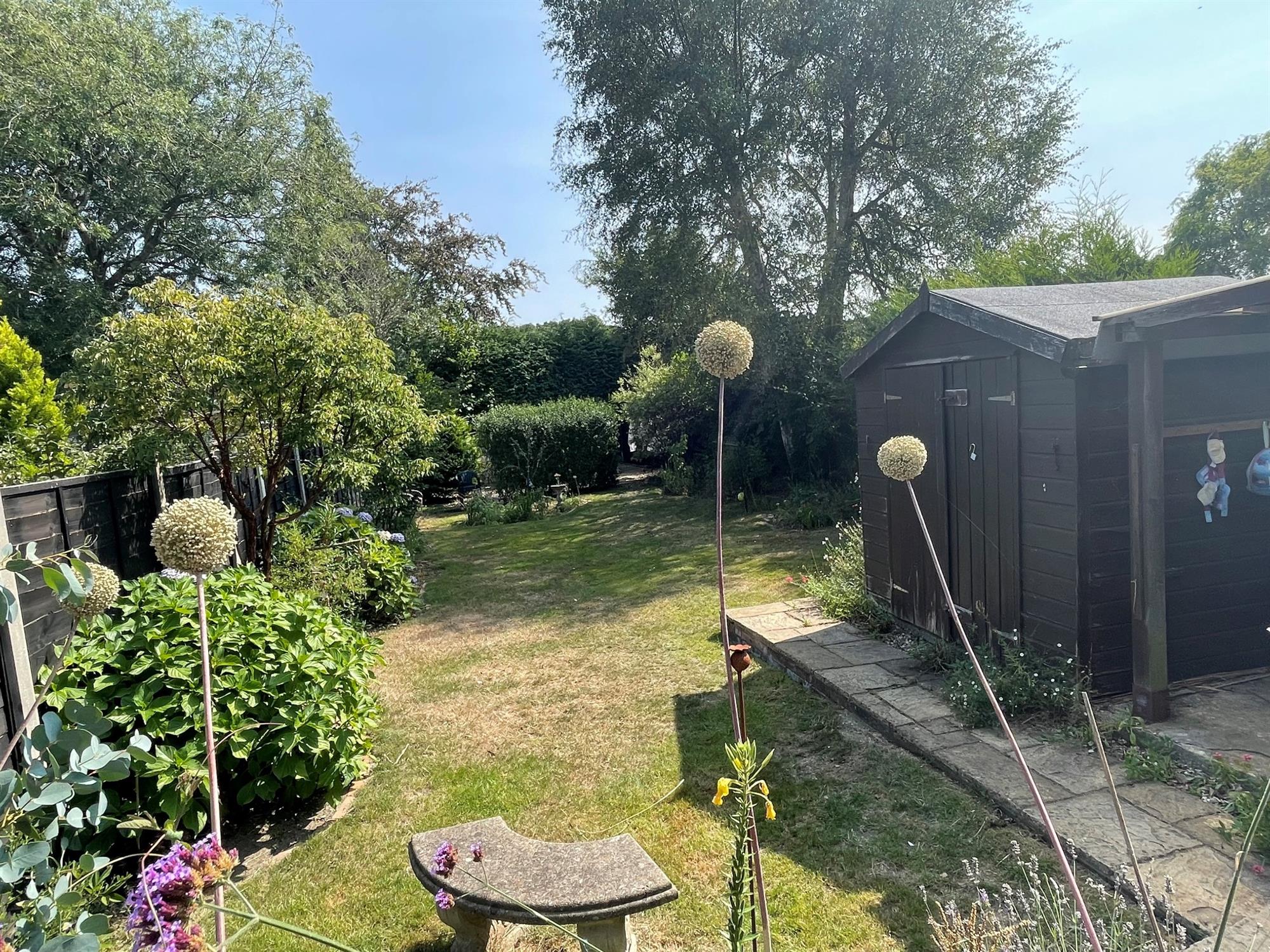 A large southerly facing garden which is fenced to boundaries. Patio area. Laid to lawn with well stocked flower beds. Timber Garden shed. Log store. Further garden area to the rear.