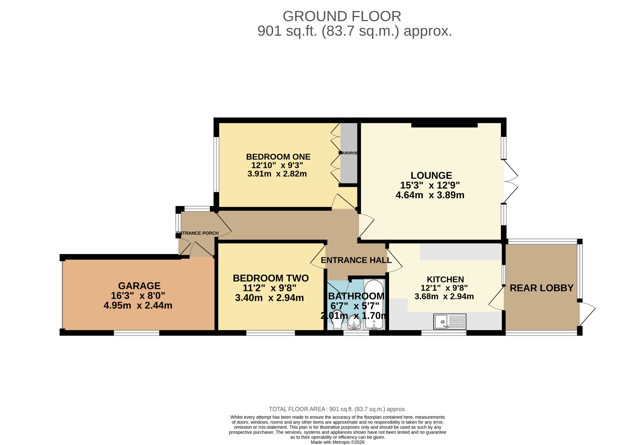 Brick and uPVC construction with flat roof. UPVC windows and door leading to rear garden. Various electric points. Plumbing for washing machine.