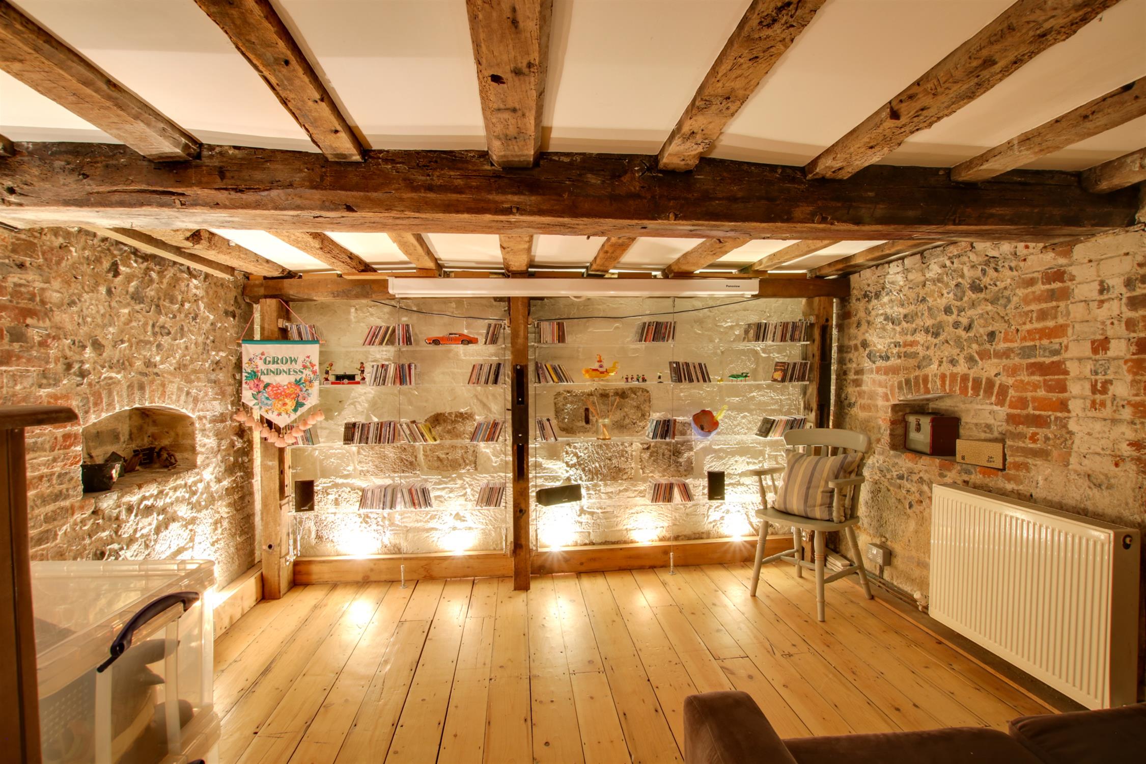 A great surprising feature of the cottage is the cellar which has been superbly converted into a versatile room. There is an abundance of character with exposed flint walls, ceiling beams and floorboards. Radiator.