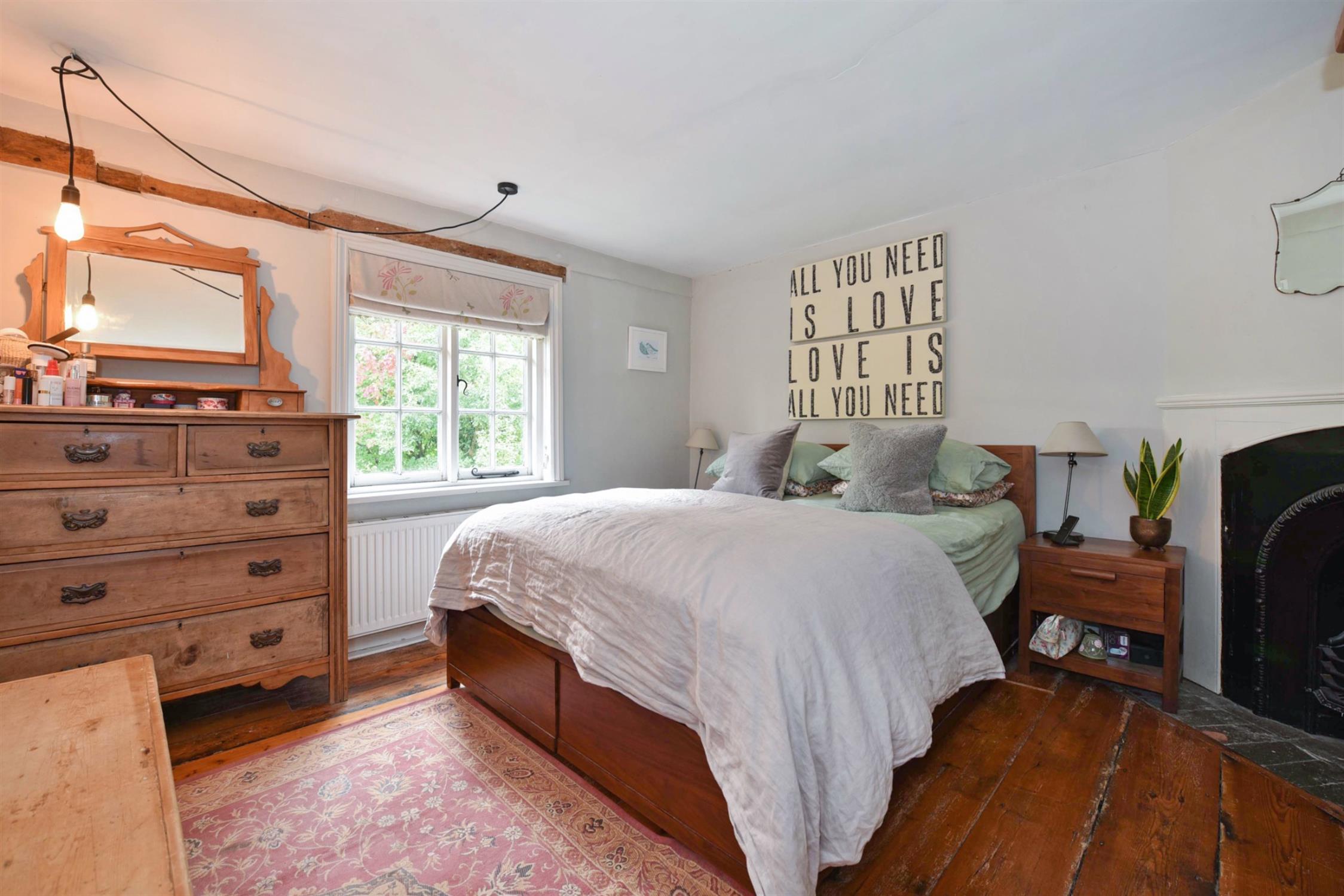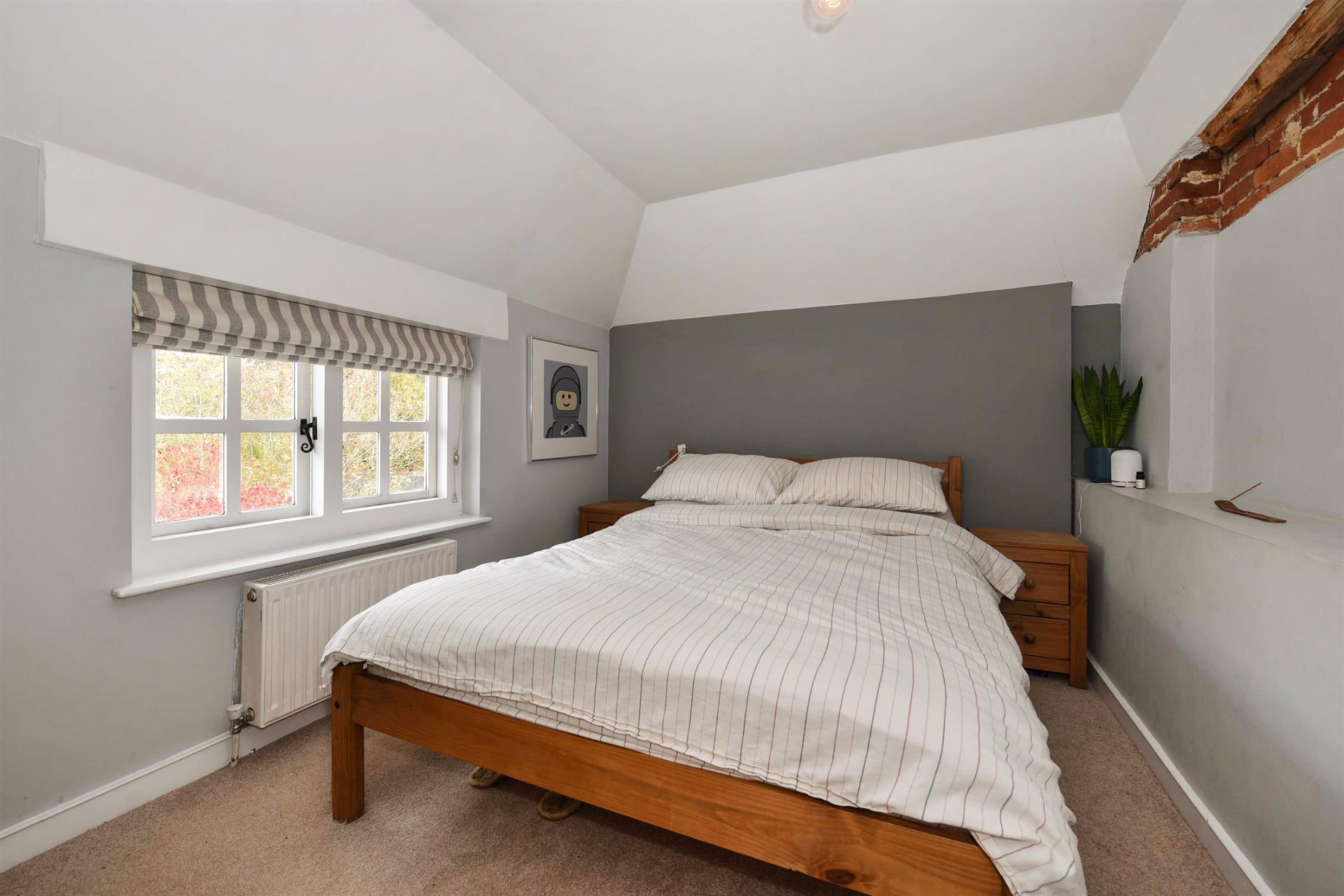 Cottage style window to the front aspect. Exposed floor boards. Built in cupboards. Period style radiator.