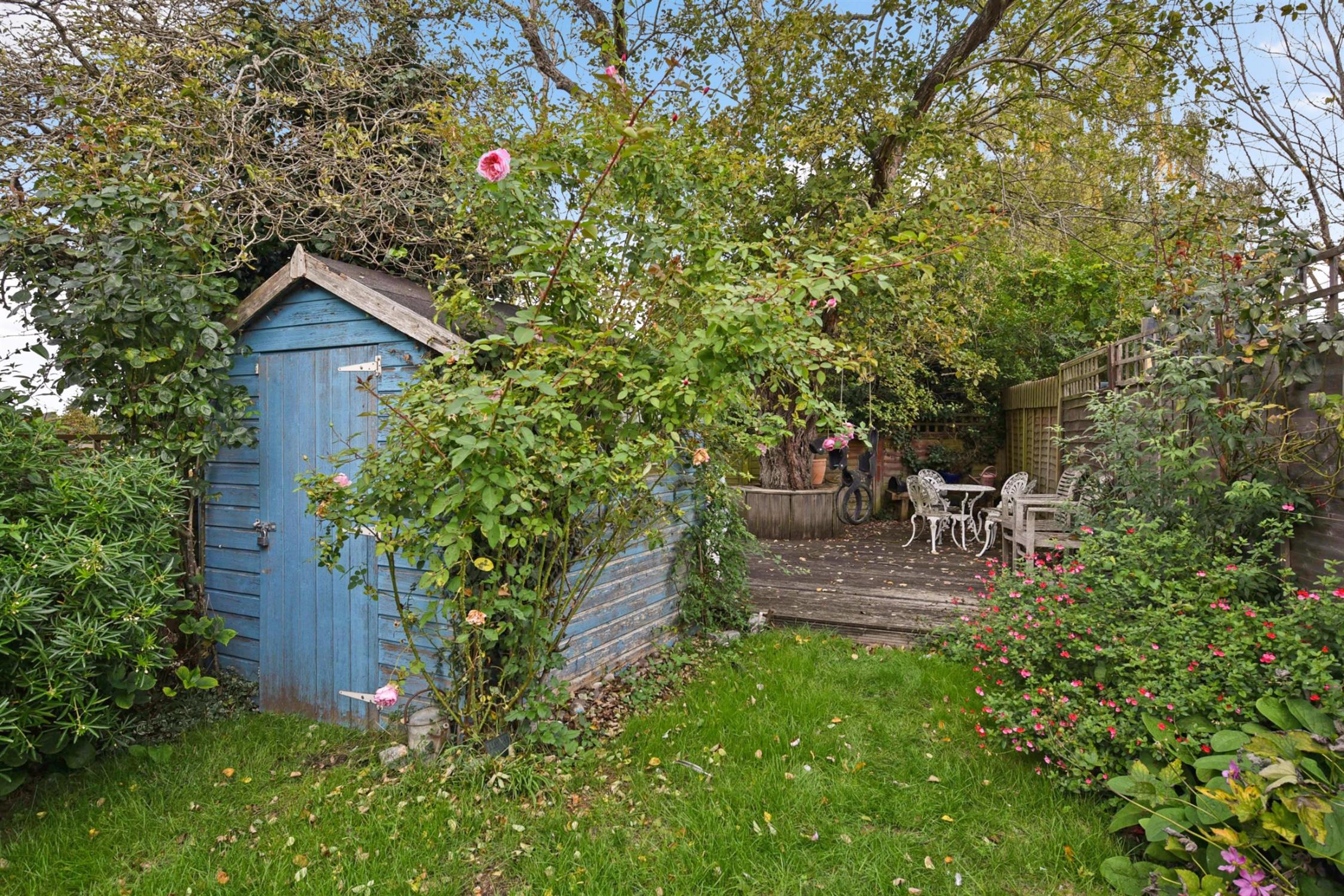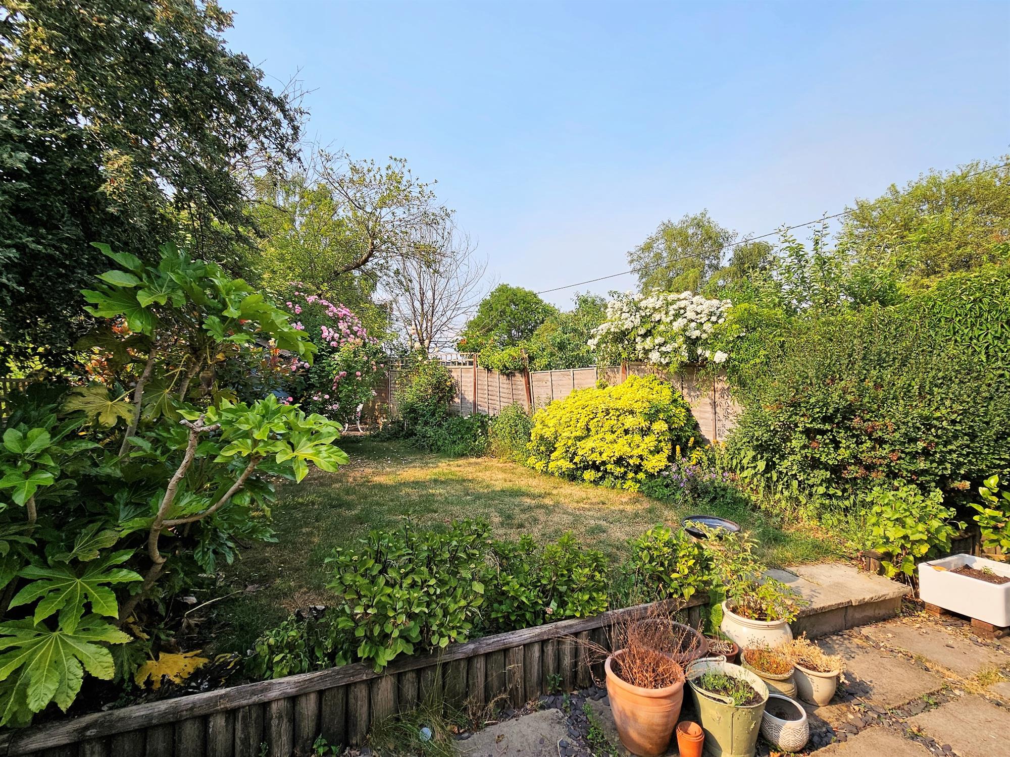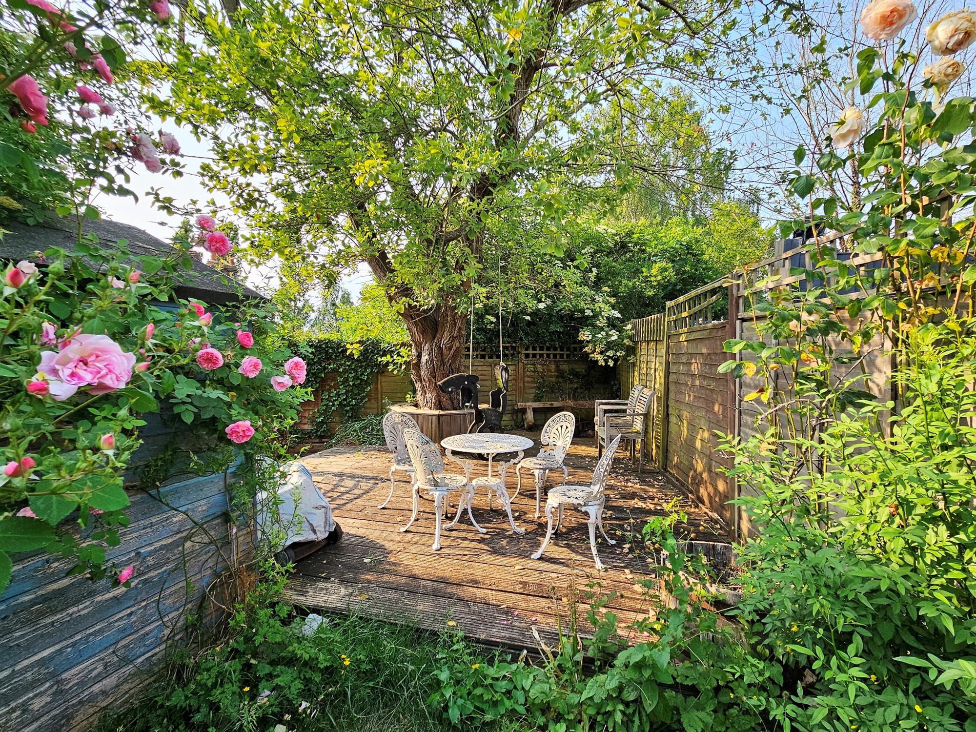The rear garden, is enclosed and landscaped in a pretty cottage garden design with lawn and well stocked borders. There is a paved terrace to the rear of the house and a decked terrace at the end of garden.