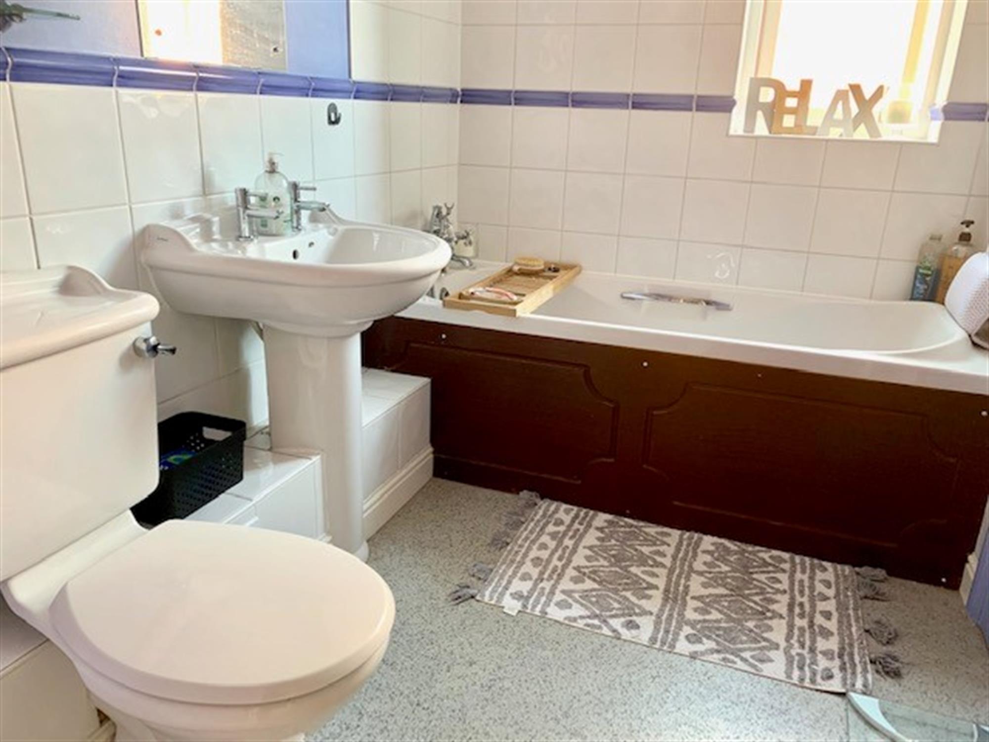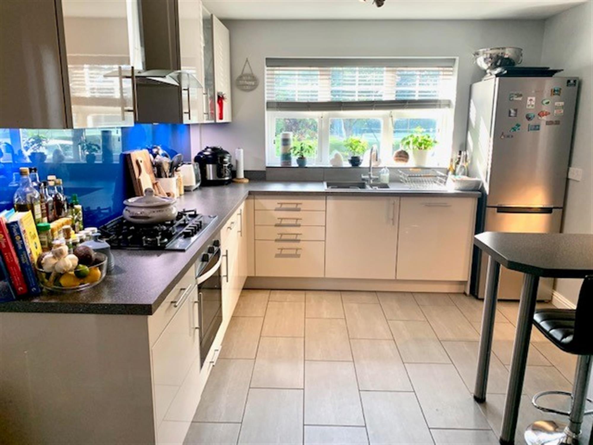 A good-sized dining room with titled flooring at the rear of the property with patio doors to the garden and access to the kitchen and utility.