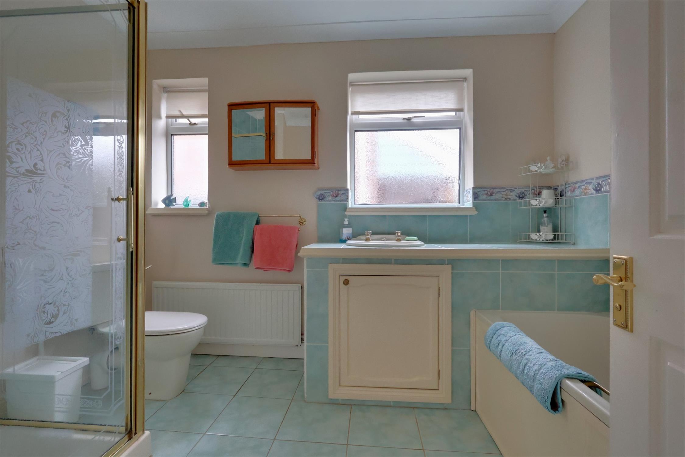 Two obscure double-glazed windows to side elevation. Bathroom consists of a four-piece suite. Panelled bath, shower cubicle, Vanity wash hand basin and low level W.C. Part tiled walls. Radiator.