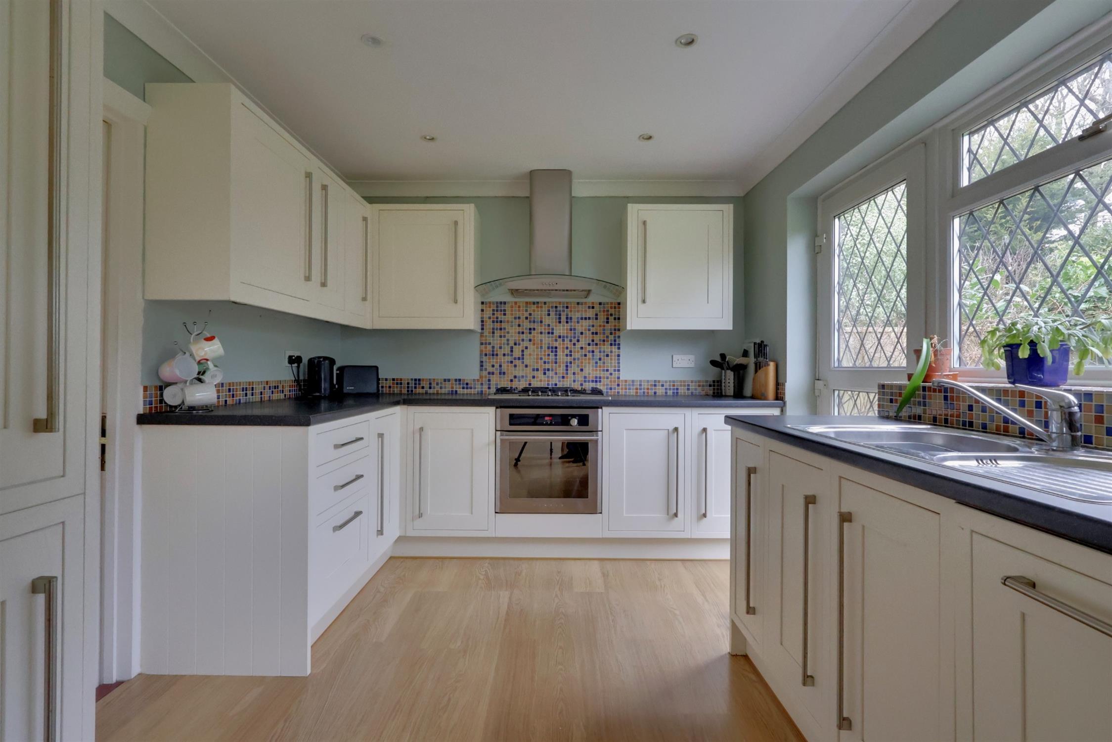 Double-glazed window to rear elevation. Double-glazed door onto rear garden. A range of wall and base units with hard top work surfaces over. Incorporating a stainless steel sink with mixer tap over. Integral gas hob with extractor hood over and oven under. Integral dishwasher and fridge/freezer. Door leading into the garage.