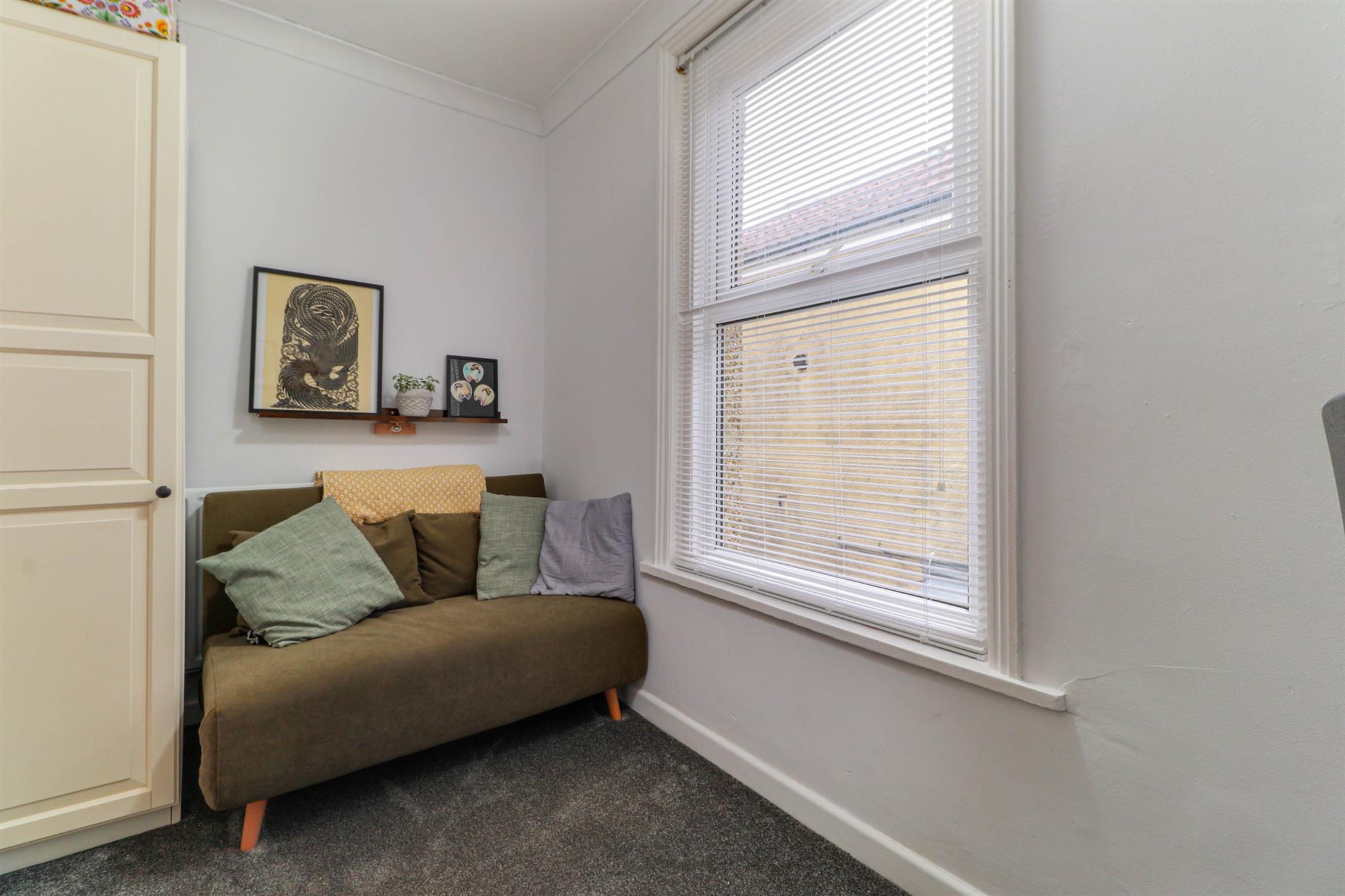 Coved ceiling, double glazed bay windows, radiator, electric fire, laminate flooring.