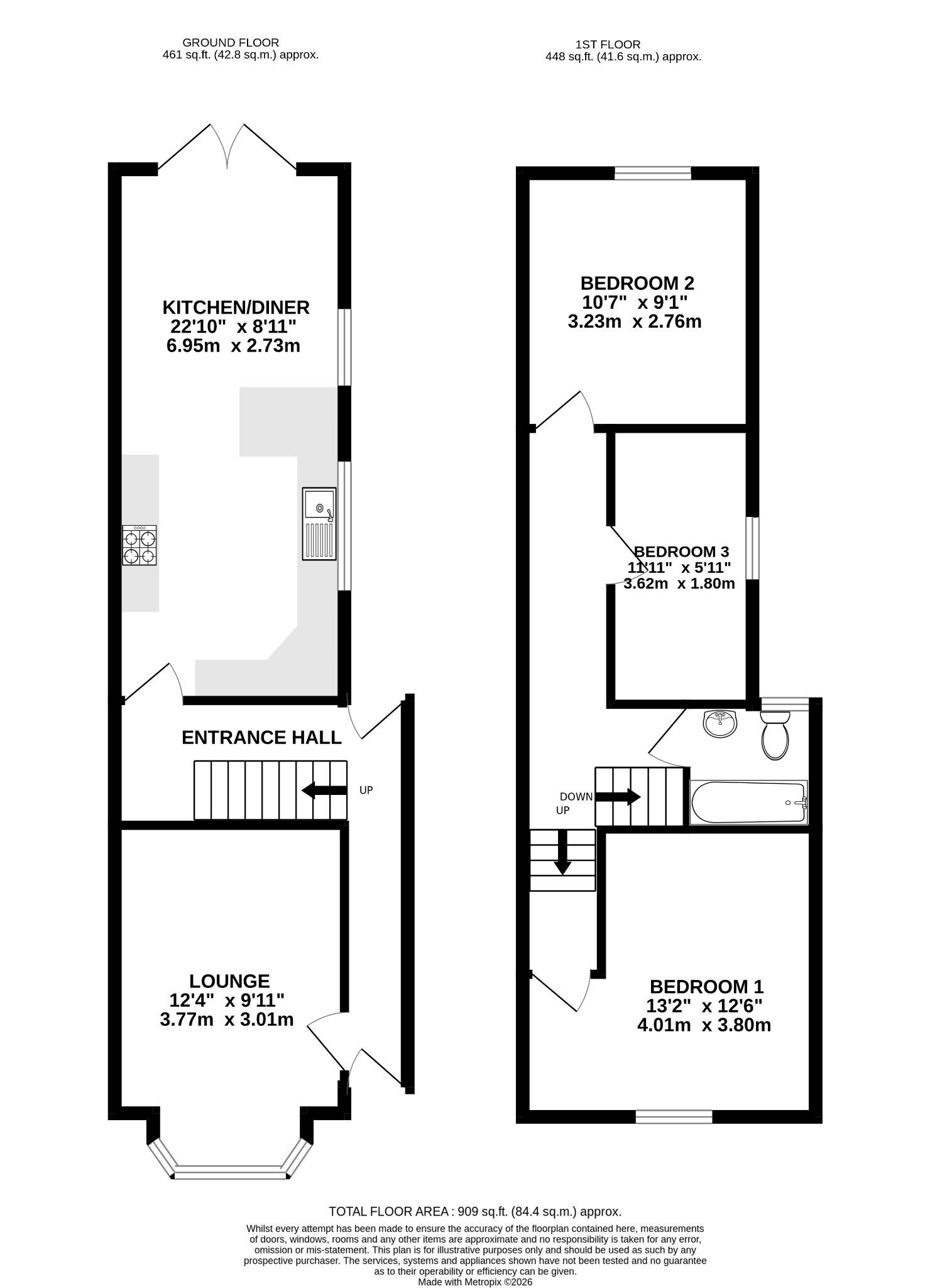 Upstairs, the property comprises two well-proportioned double bedrooms, alongside a third single bedroom which would also make an ideal home office or study. A modern family bathroom completes the first-floor accommodation. The rear garden has been beautifully landscaped, featuring a combination of patio, lawn, and a raised decking area with a pergola - creating a versatile outdoor space for dining, relaxation, and entertaining throughout the year. Presented in good condition throughout, this delightful home is perfectly suited to first-time buyers, growing families, or investors seeking a well-located property with period charm and contemporary finishes.