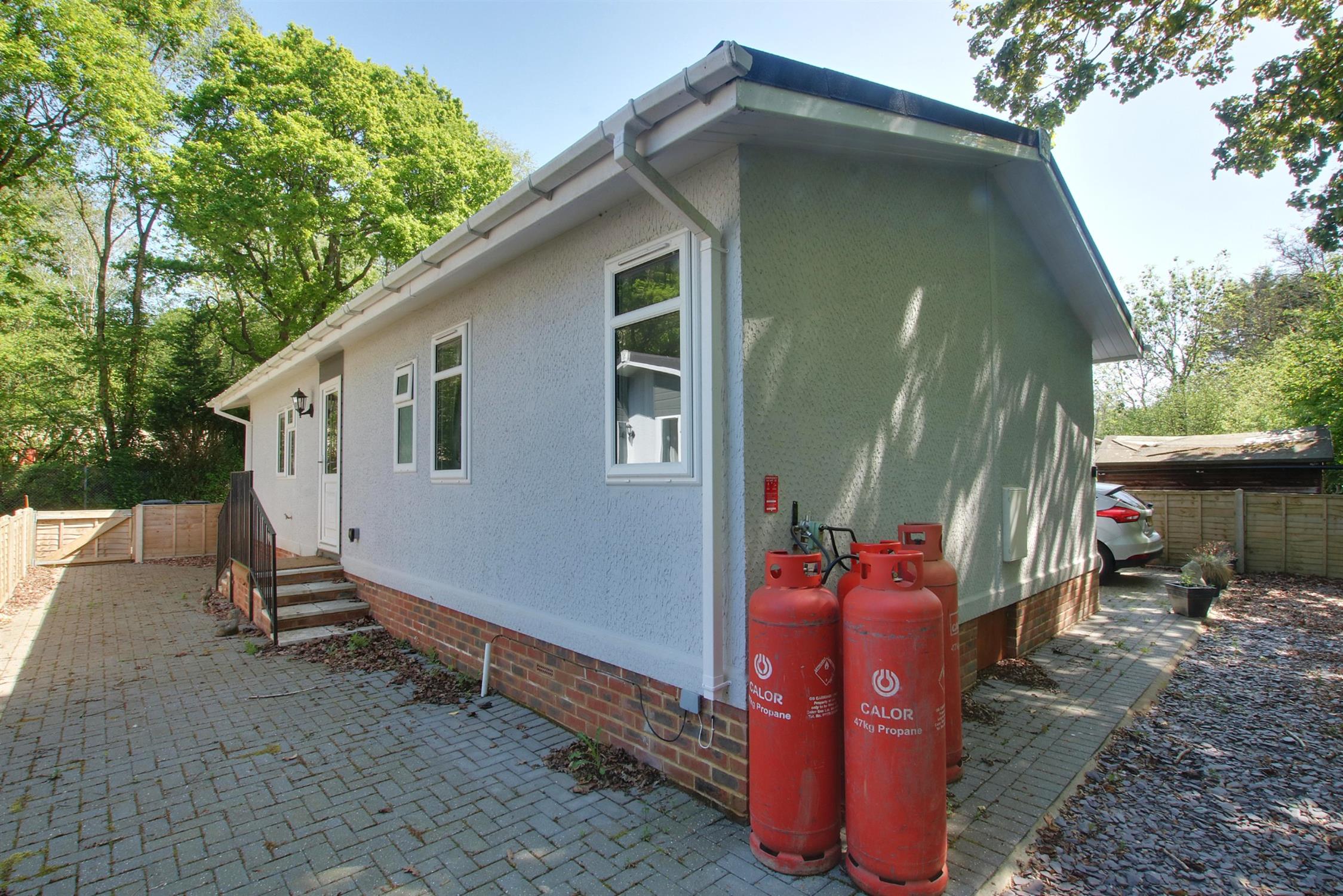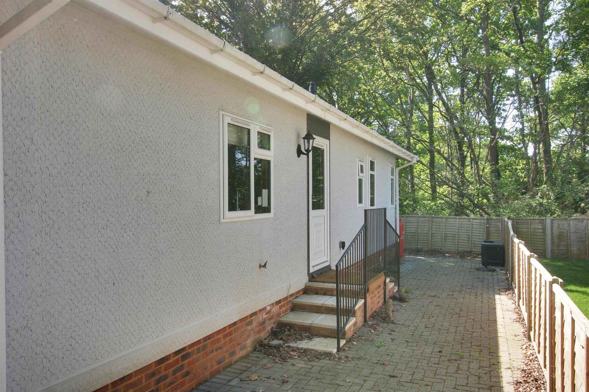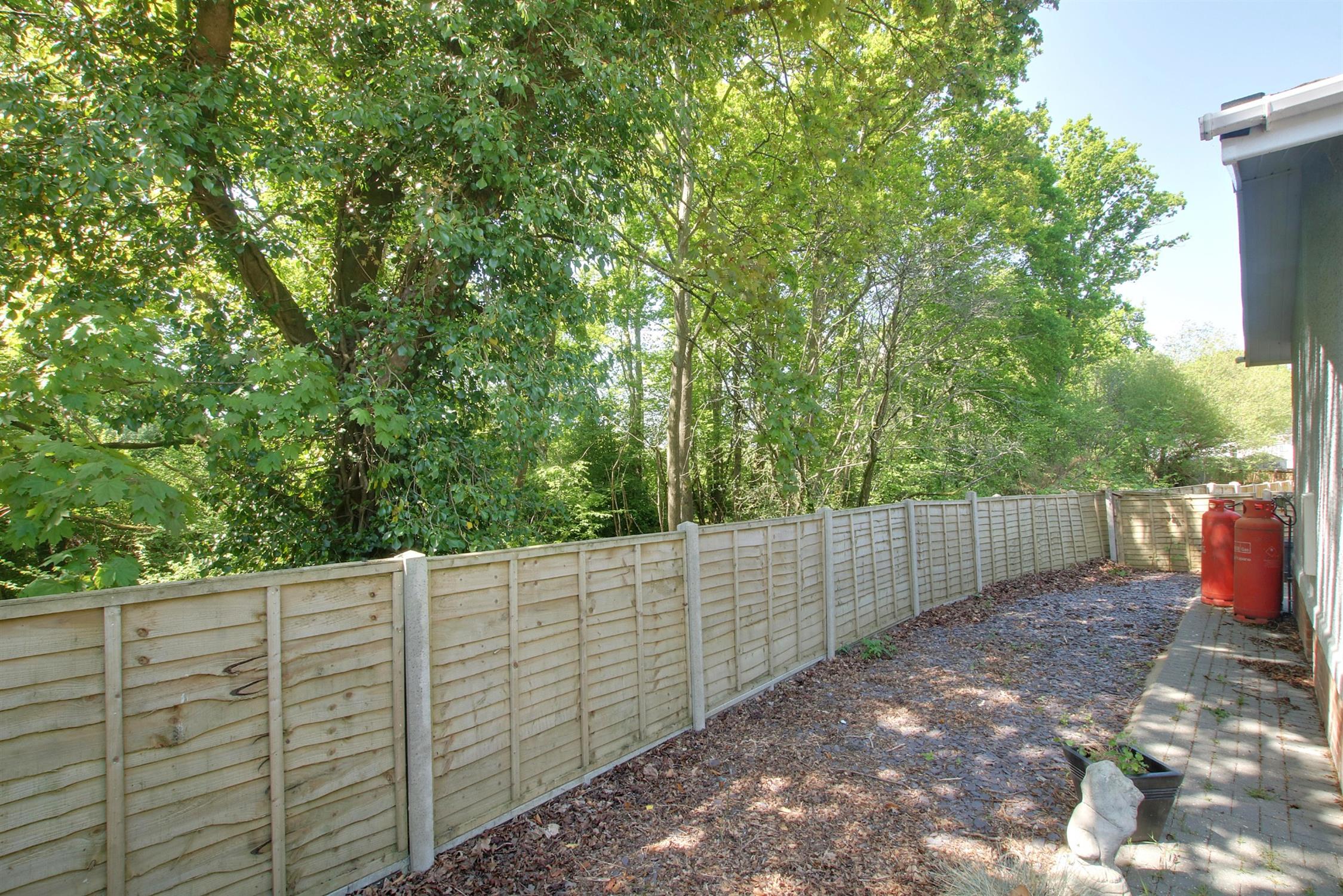 Driveway parking to the side for at least two cars, private area of garden to the rear backing onto light woodland extending around the other side of the property providing additional side access via the utility room.
