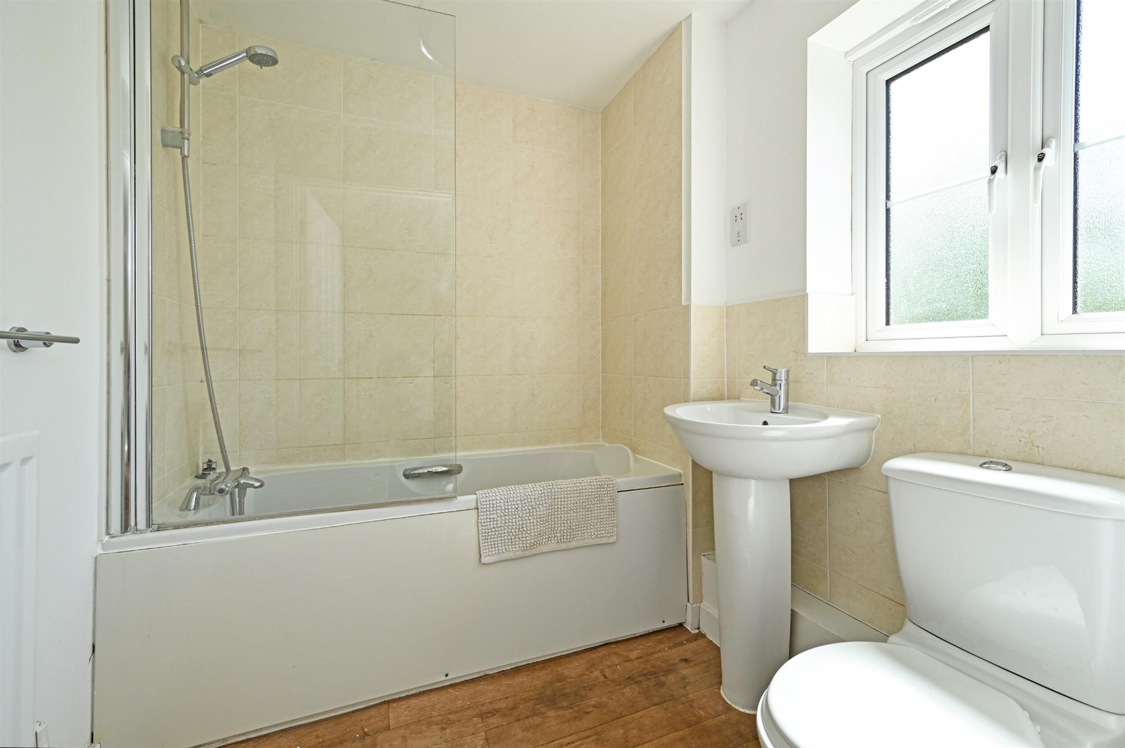 Upstairs, there are two bedrooms, both of which are doubles. The family bathroom is a white suite and is fitted with shower over bath, toilet and handbasin, and there is also an additional storage cupboard on the landing.