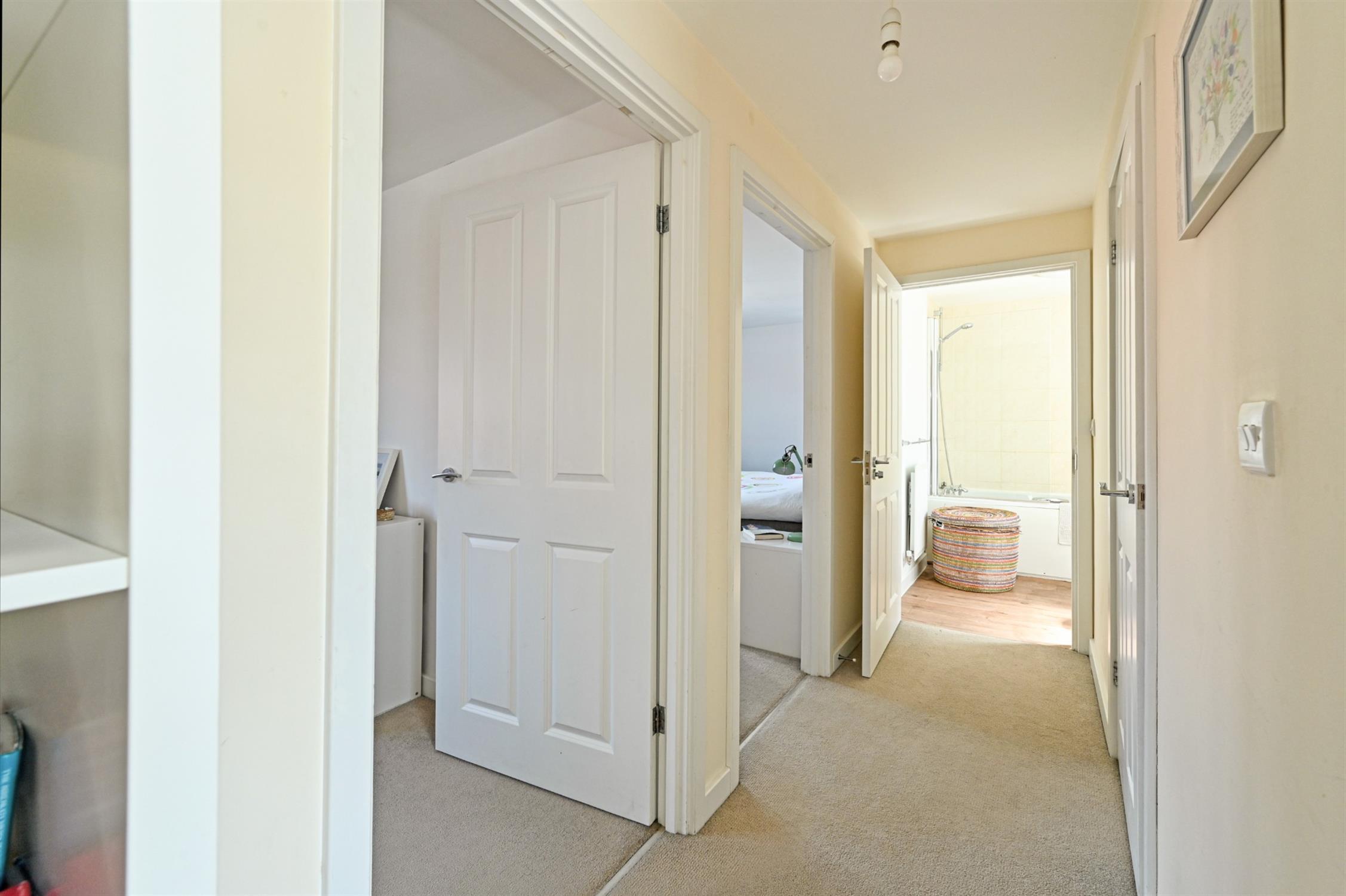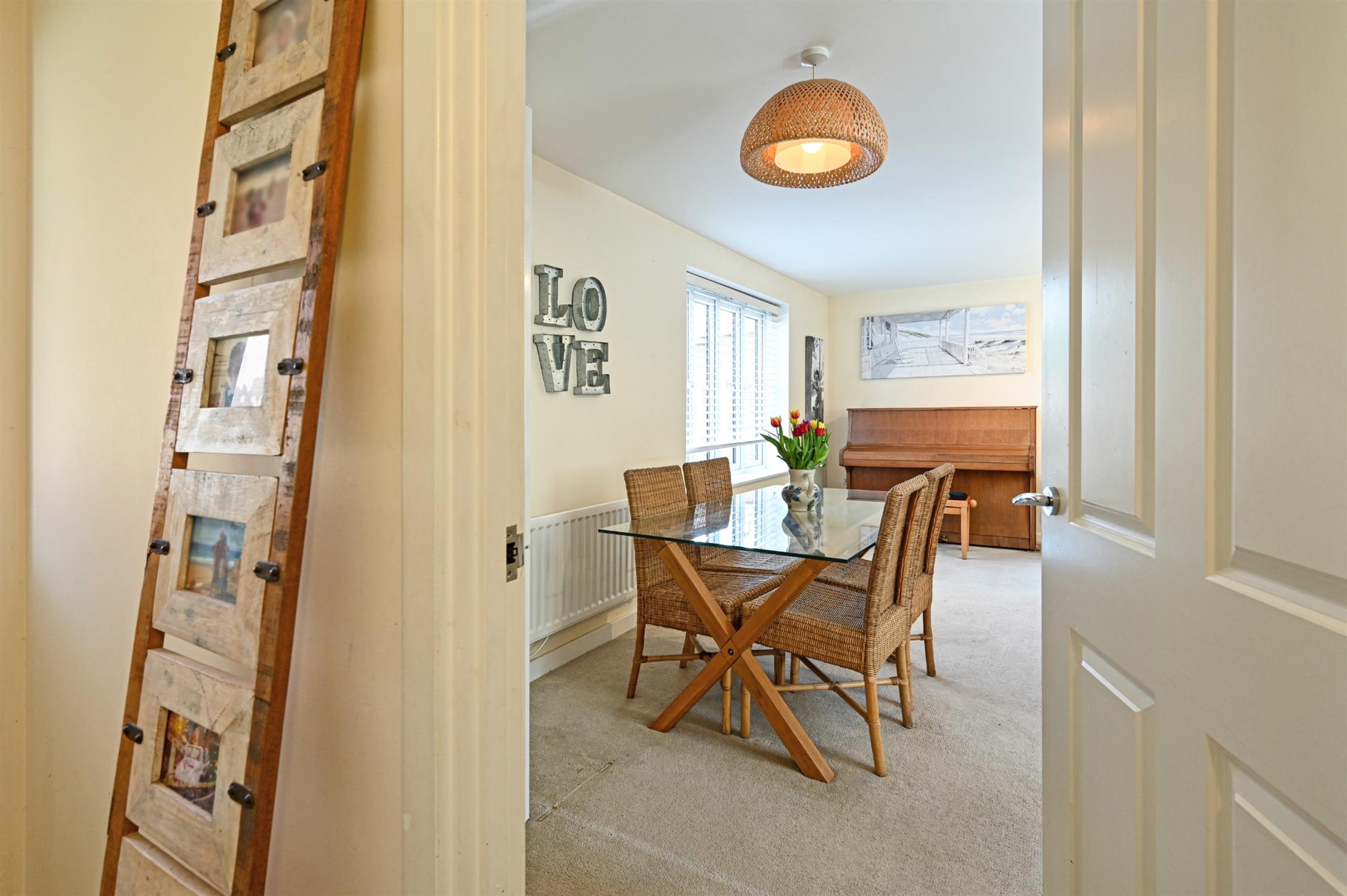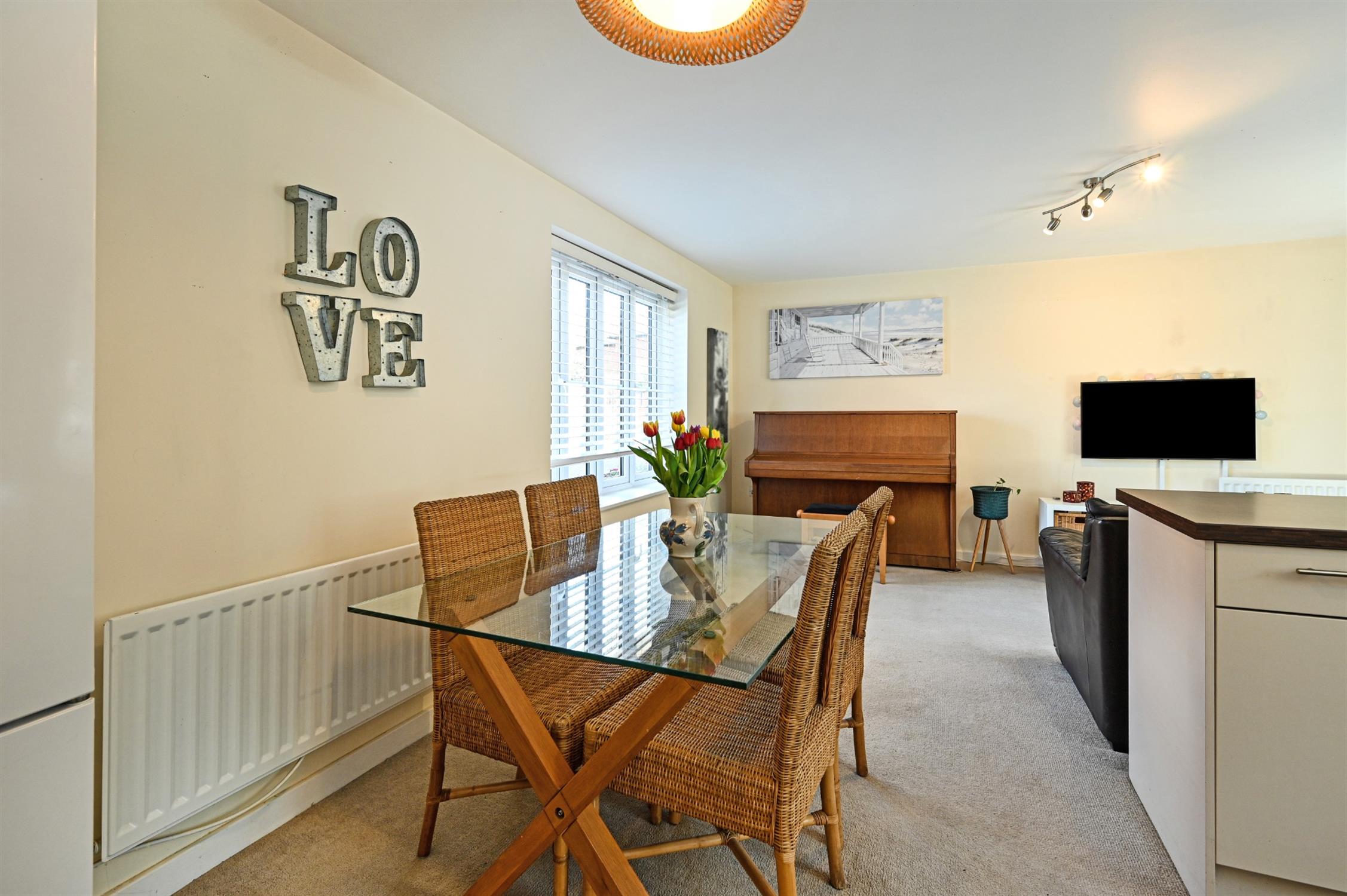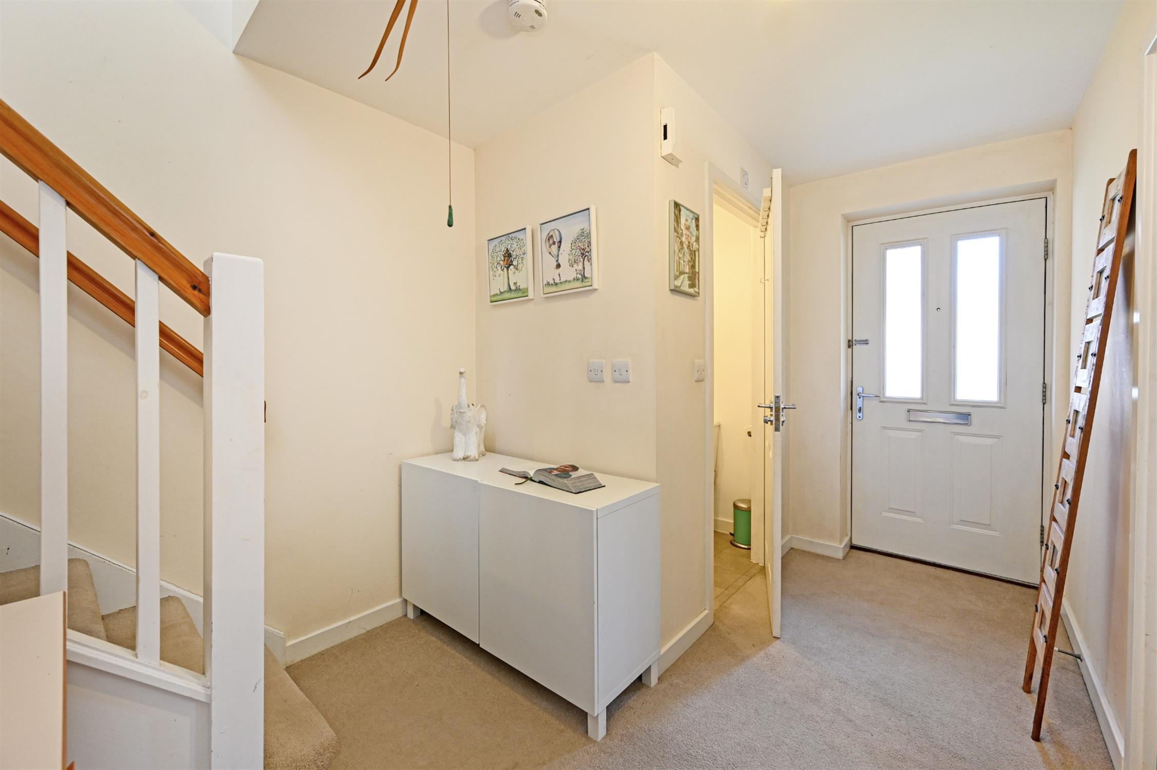 Upon entry through the covered front door, there is an entrance hall which leads to all ground floor accommodation and has stairs rising to the first floor. The kitchen/living room is open-plan and is a warm social space with plenty of room for both lounge and dining furniture. The kitchen is fitted with a range of eye and low-level units with a peninsula island. It is fitted with a range of integrated appliances including gas rings, oven, fridge/freezer, and there is further space for whitegoods. French doors lead from the living room to the garden and allow ample light into the dual aspect space. Finishing off the ground floor is a WC for guests and built-in storage under the stairs.