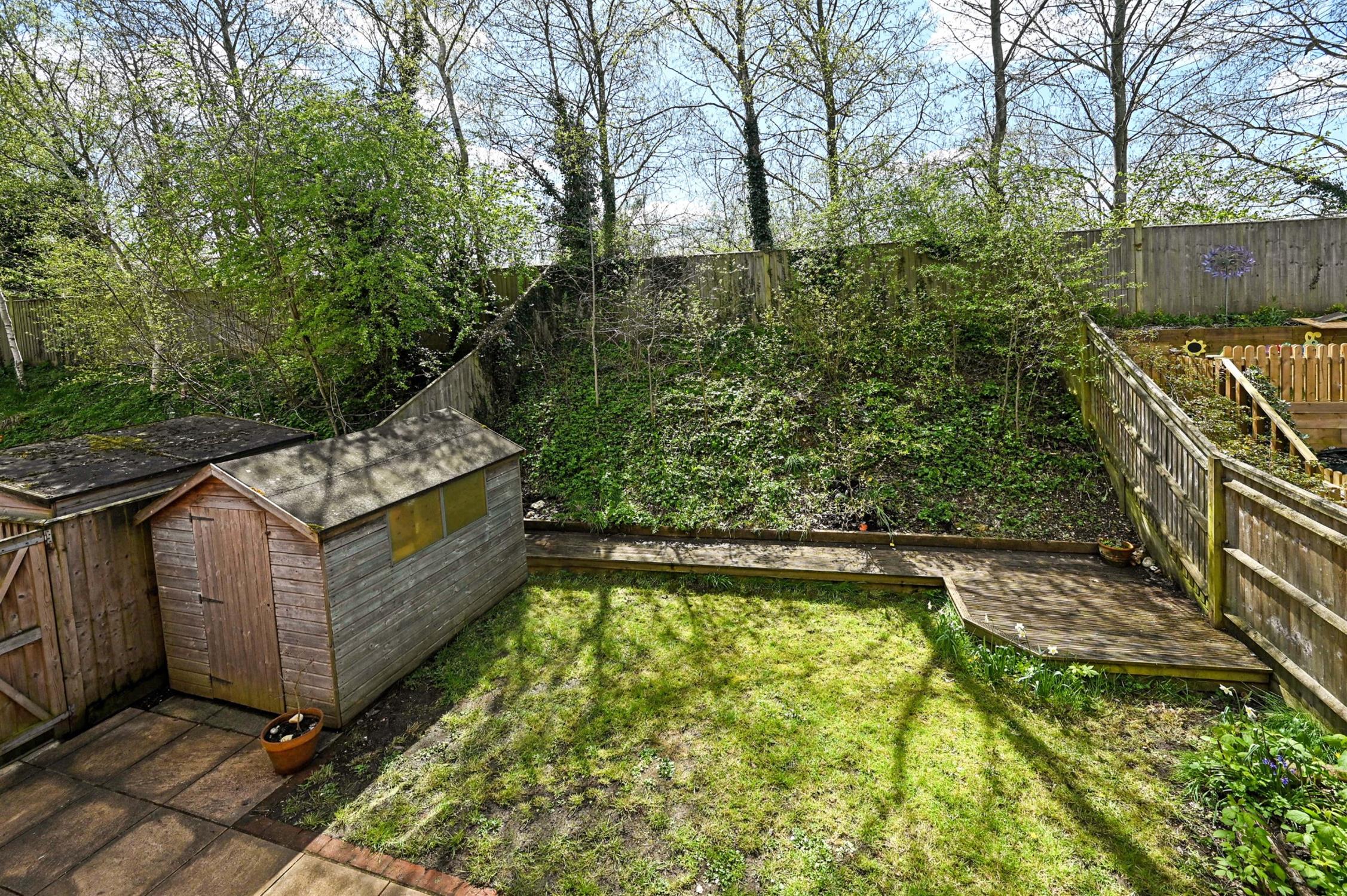 Outside, there is an enclosed rear garden which benefits from a warm southerly aspect. There is a sunny patio seating area directly outside the living room and the rest of the garden is laid to lawn with a bank of mature shrubbery, a gate for side access and a shed. To the side of the property, there is parking for several vehicles.