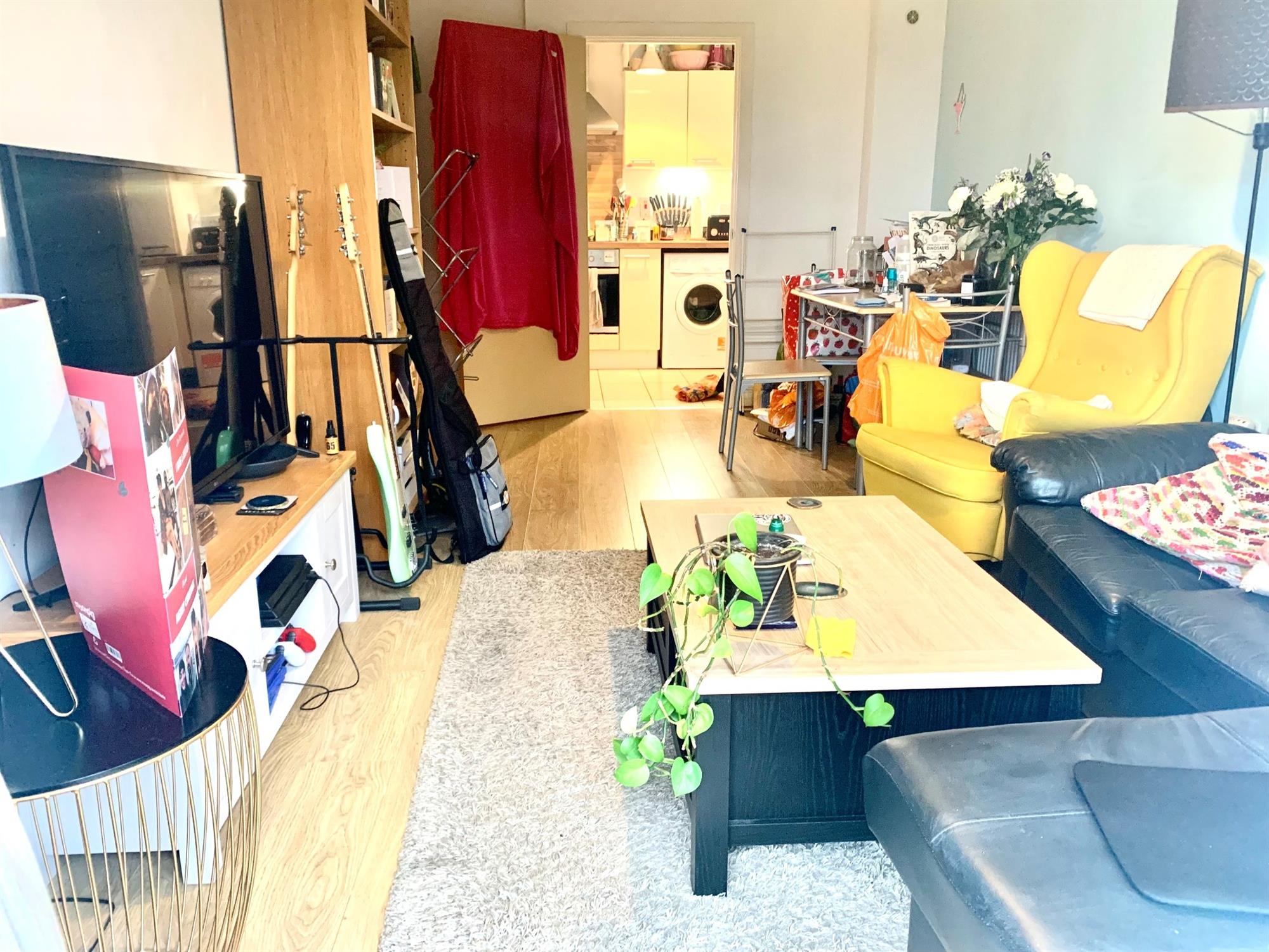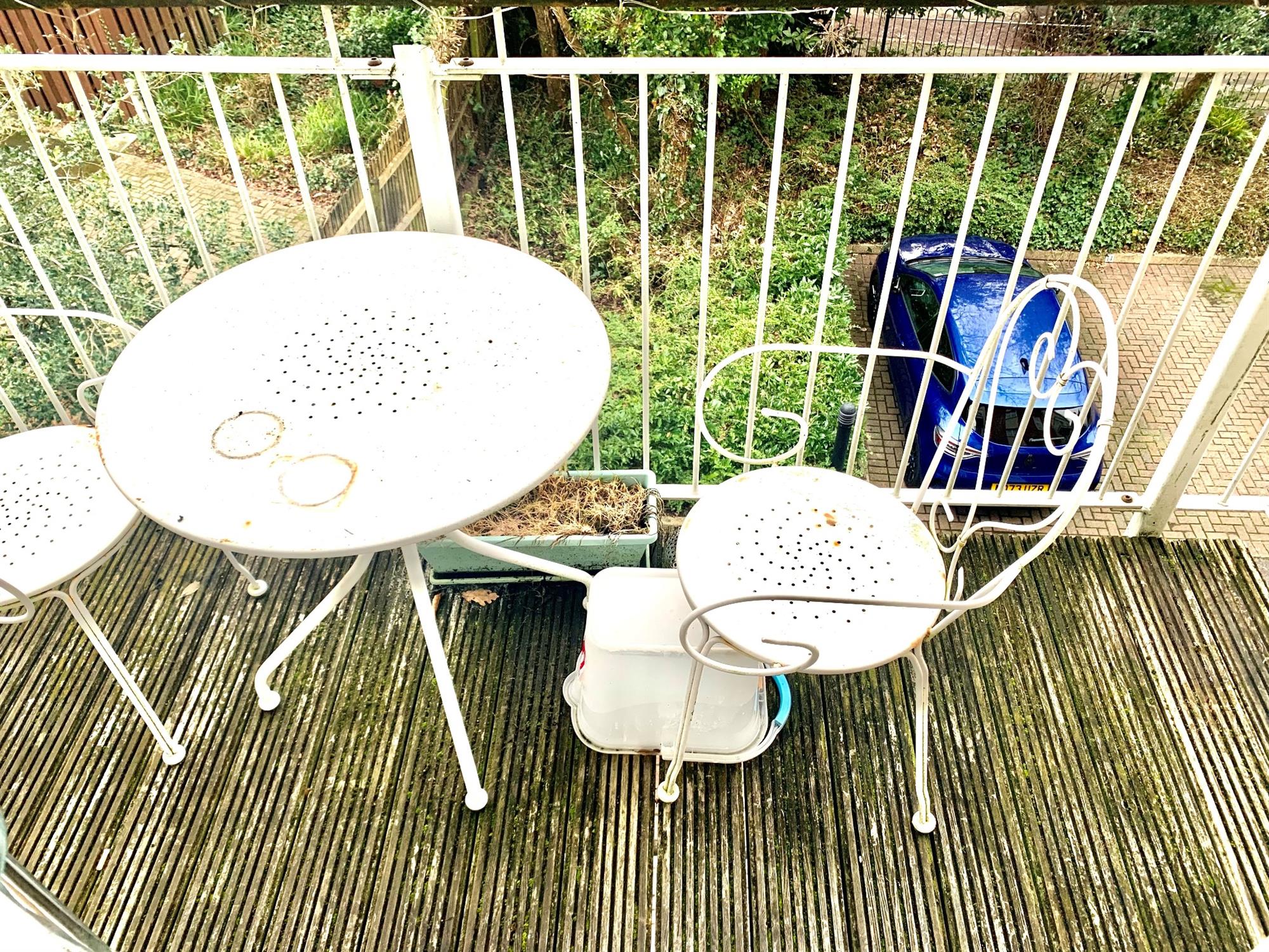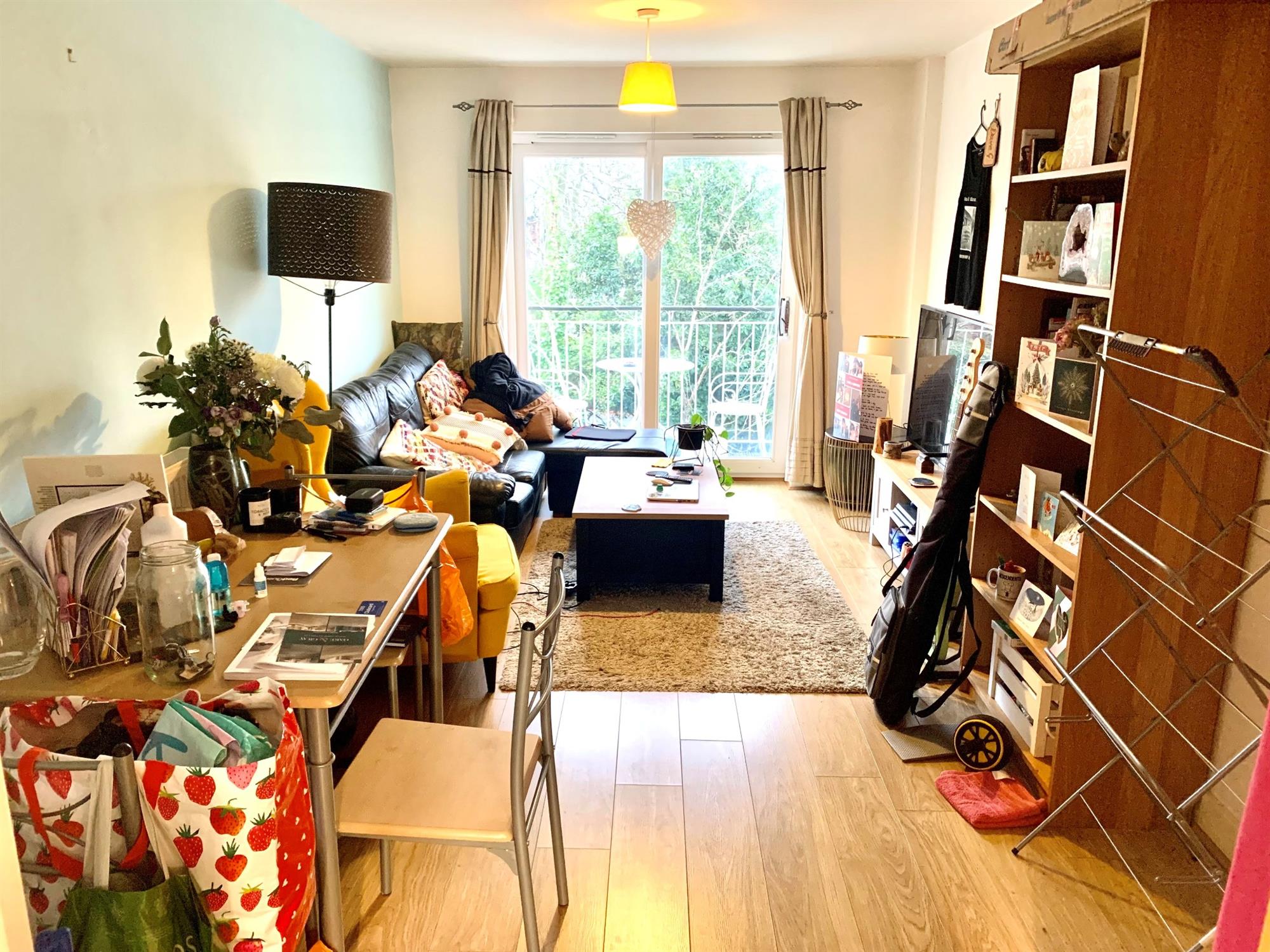 LOUNGE/DINER - Good size room with laminate flooring. Furniture consists: table & 4 chairs, leather sofa & shelving unit. Door to balcony.