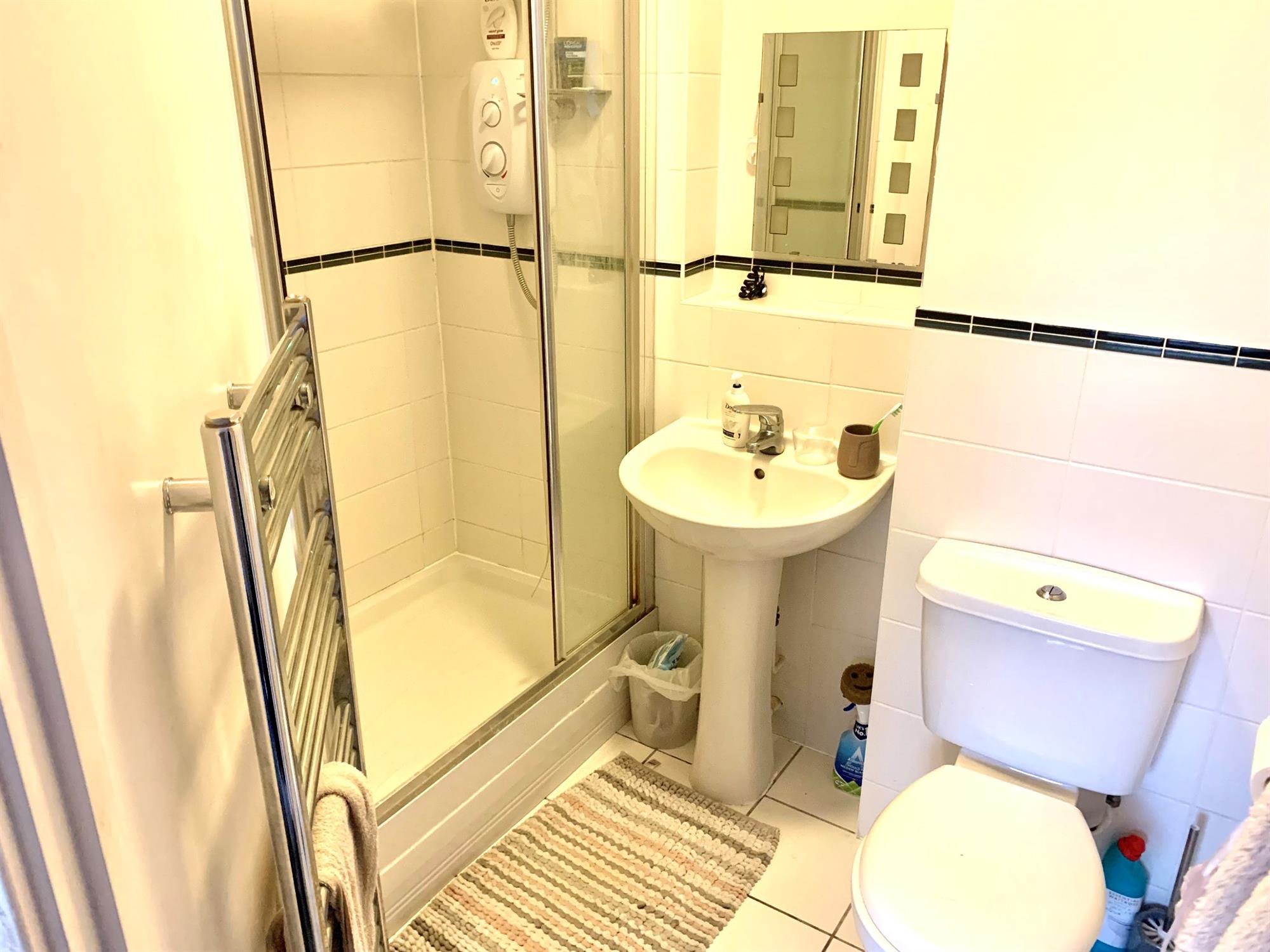 ENSUITE: White suite with double shower cubicle, sink and toilet.