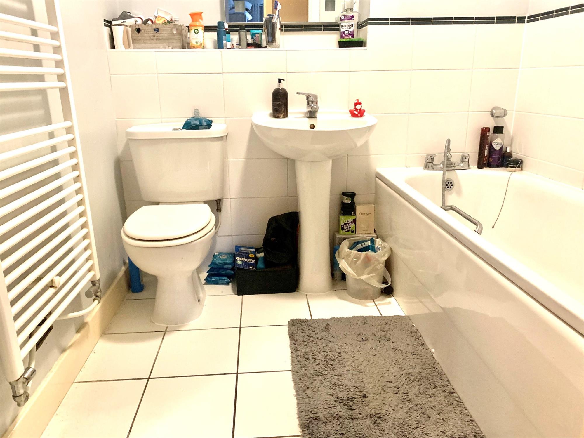 FAMILY BATHROOM - White bathroom suite with bath with hand shower attachment only, toilet and basin.