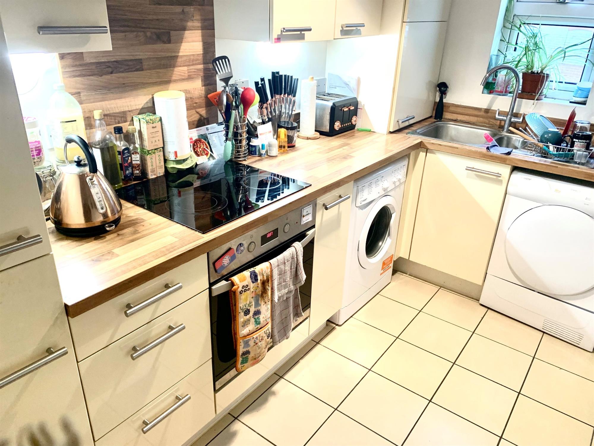 KITCHEN - Good size fitted kitchen with a range of wall and base units. Window to side. Appliances consisting of: Integral fridge/freezer / electric hob / electric oven / washing machine and tumble dryer.