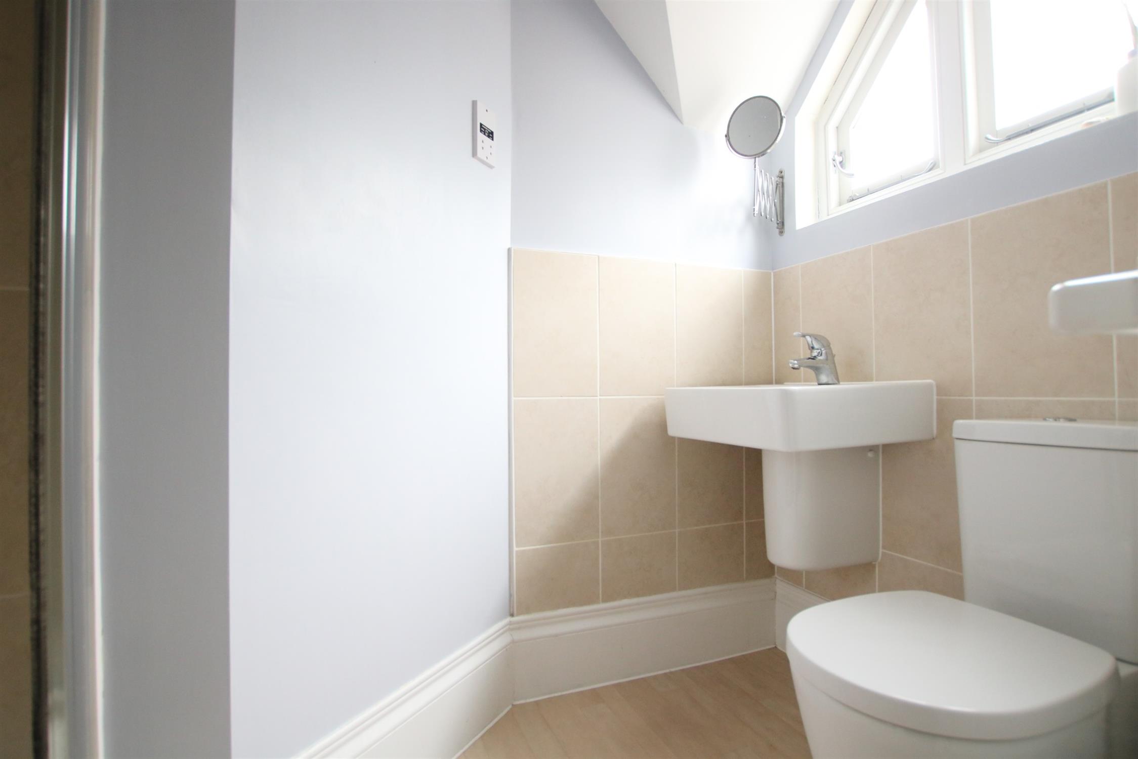 Vinyl Flooring. Enclosed Shower Cubicle with Folding Shower Door and Bar Valve Shower Unit Within. Obscured Wooden Framed Double Glazed Windows. Wall Hung Ceramic Sink. Low Level W/C. Tiling To Principal Areas.