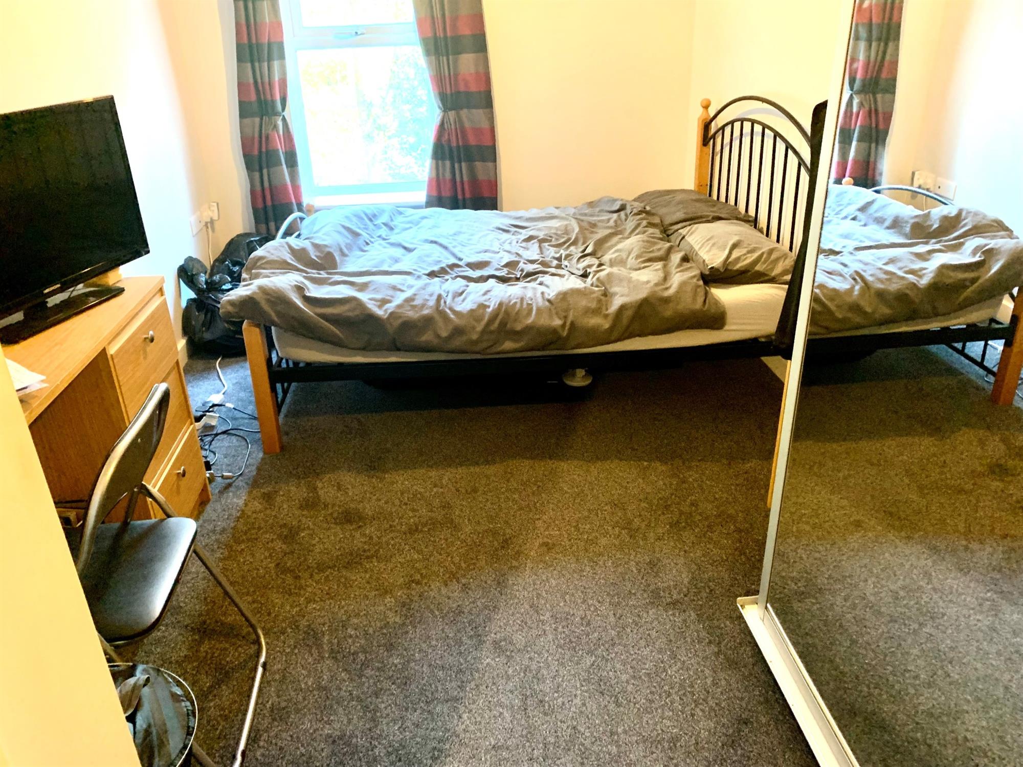 Carpeted flooring. Window to rear.