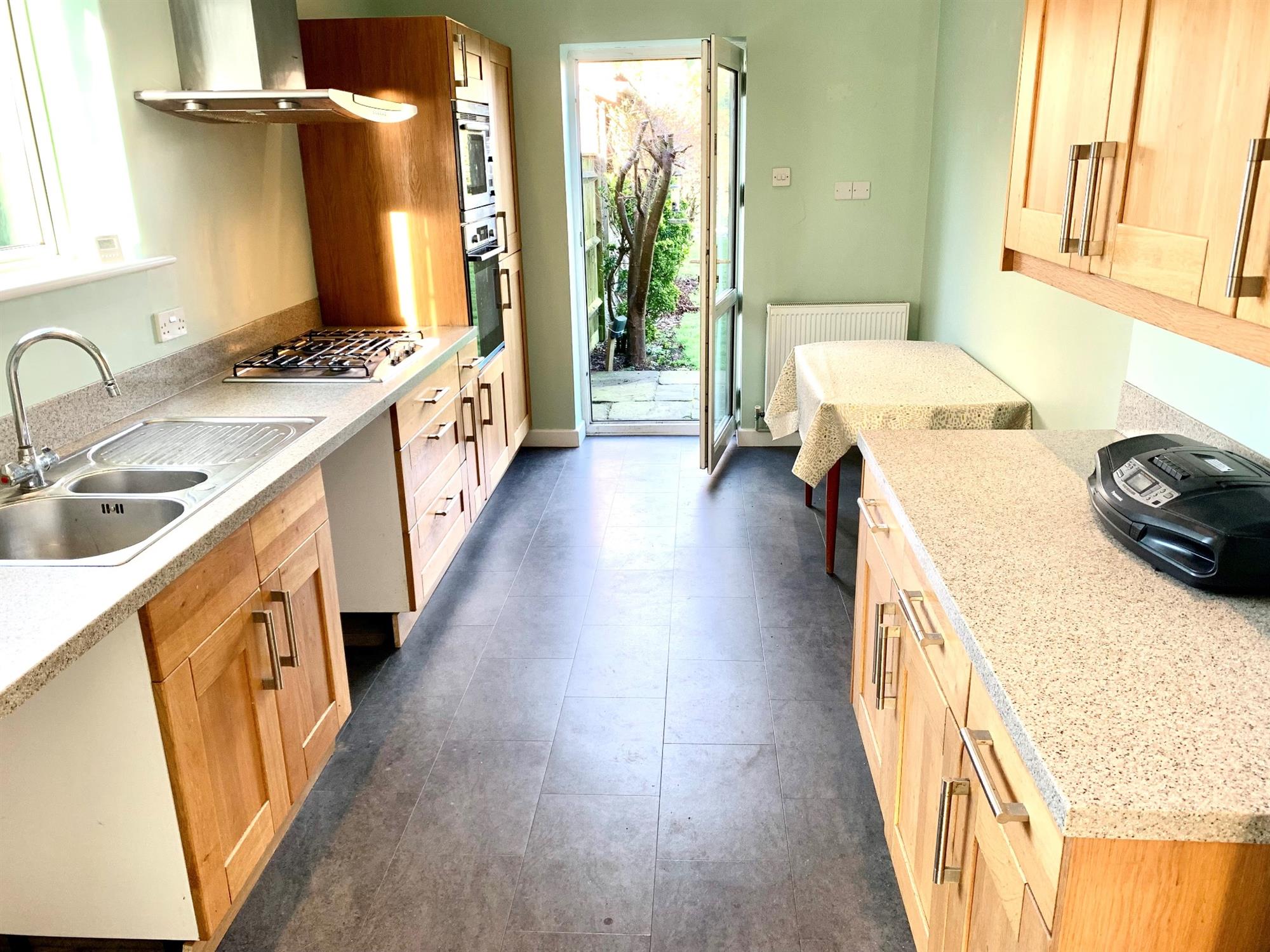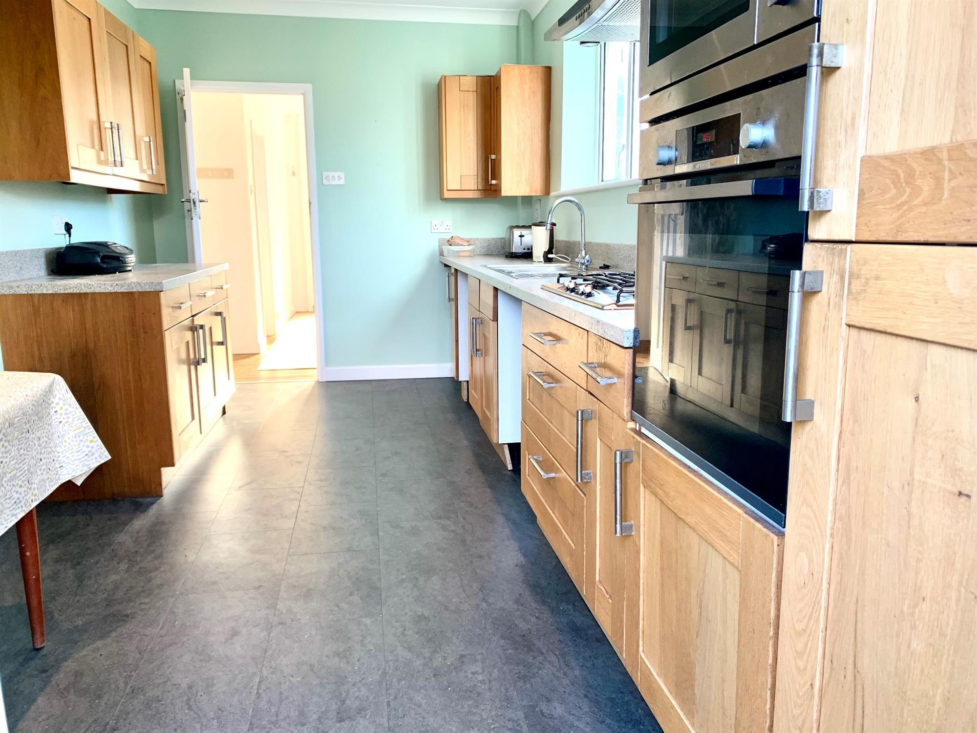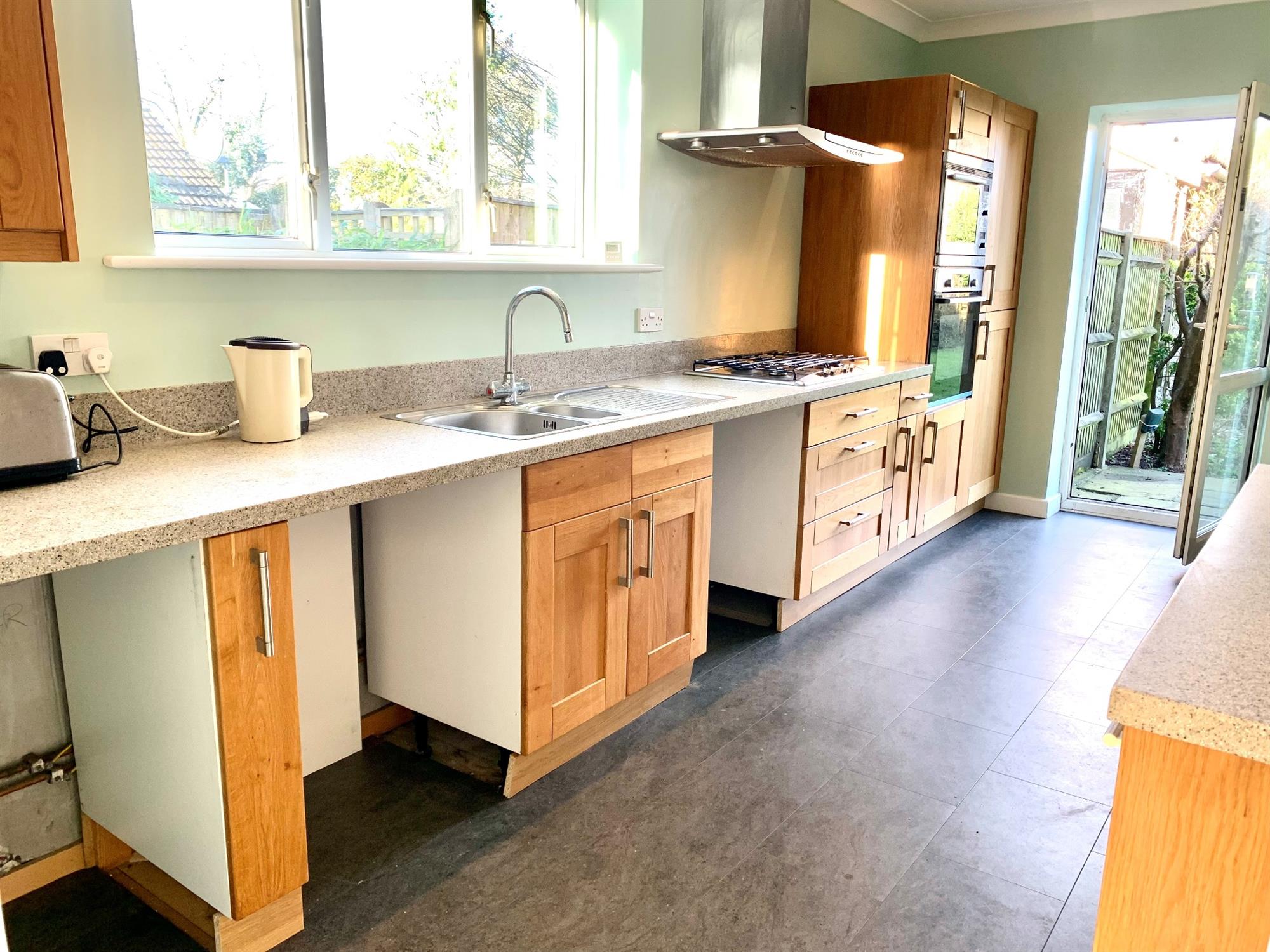 KITCHEN/BREAKFAST - Various wall and base units. Window to side and door to rear garden. Appliances consisting of: gas hob and double electric oven. Spaces for washing machine, dishwasher and fridge/freezer although these will not be supplied by landlord.