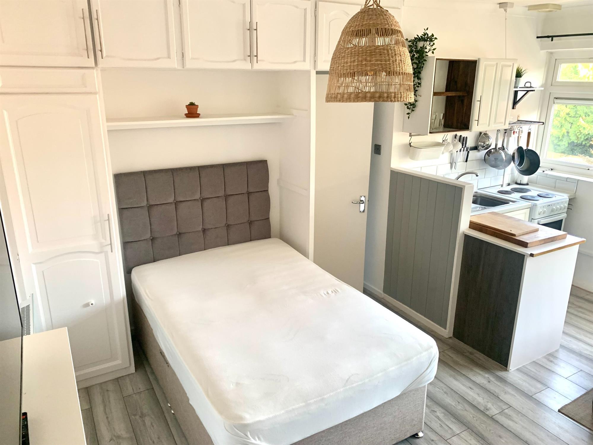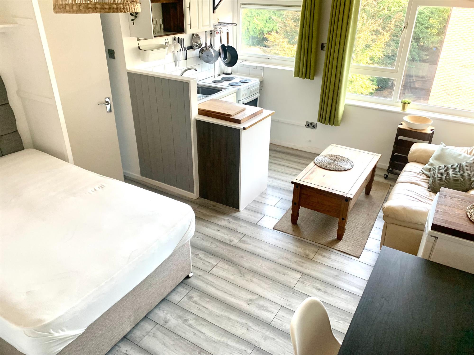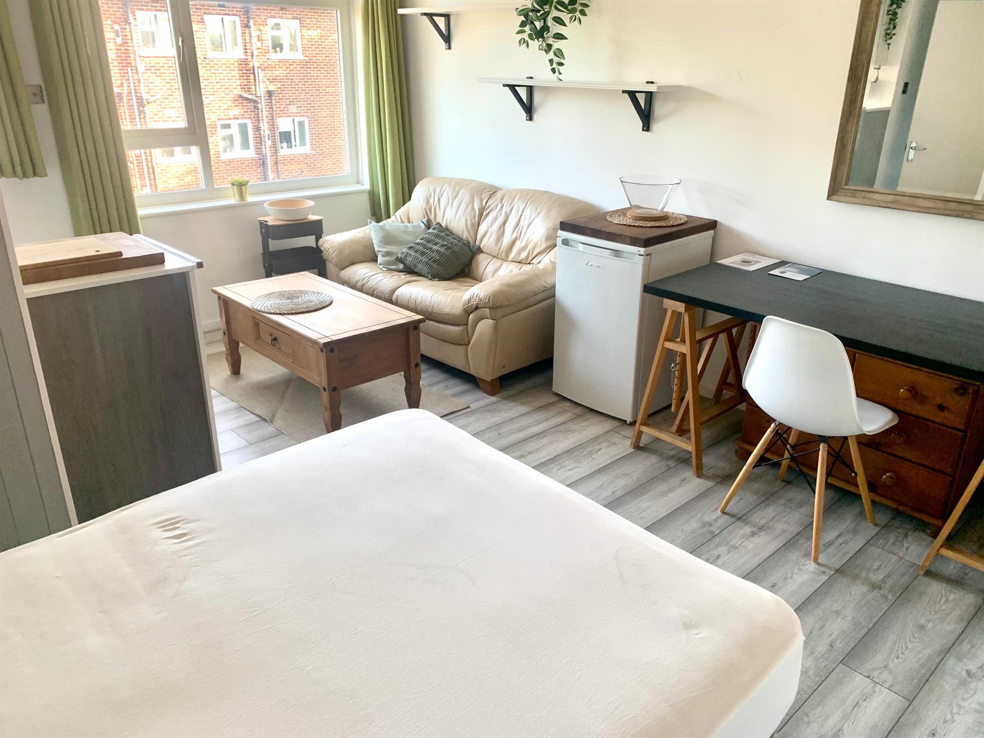 LOUNGE/BEDROOM/KITCHEN – Bright room with large windows allowing plenty of light.
